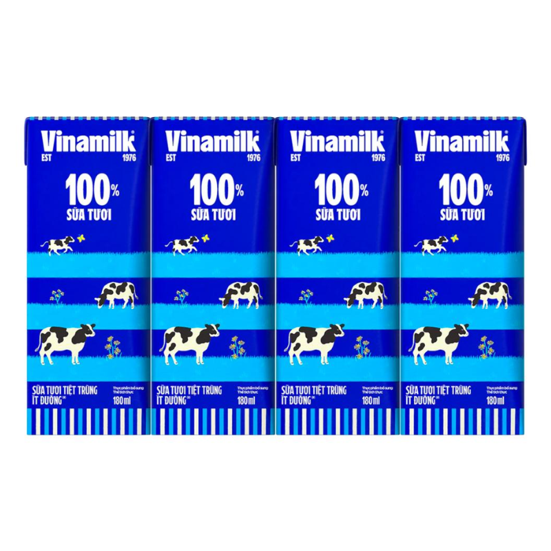 1 Lốc 4 Hộp Sữa Tươi Tiệt Trùng VINAMILK Ít Đường 180ml/Hộp