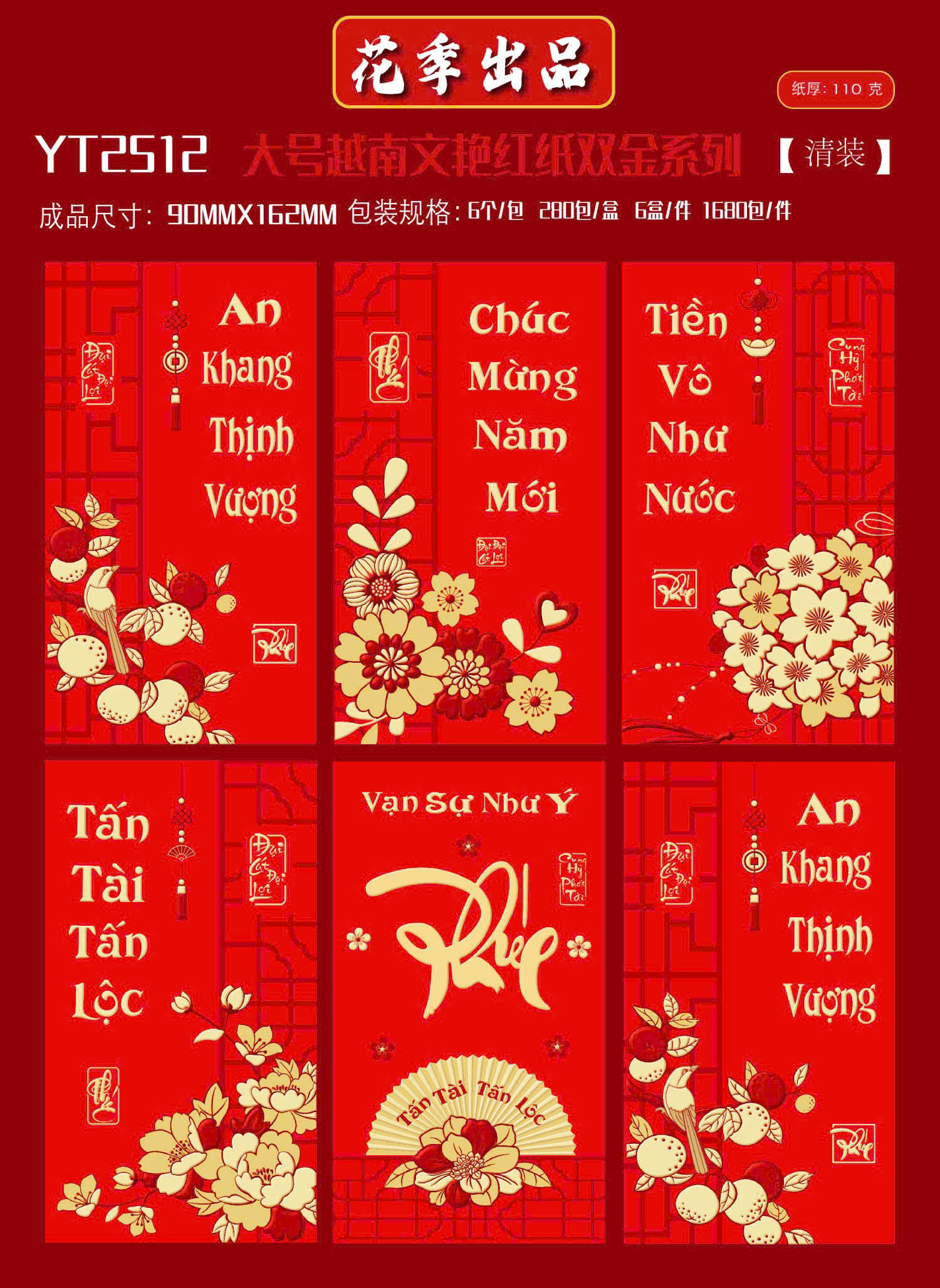 60 BAO LÌ XÌ NHUNG BẢN TO( CHỌN ĐƯỢC 10 HÌNH – 1 HÌNH 6 CÁI) nhiều hình