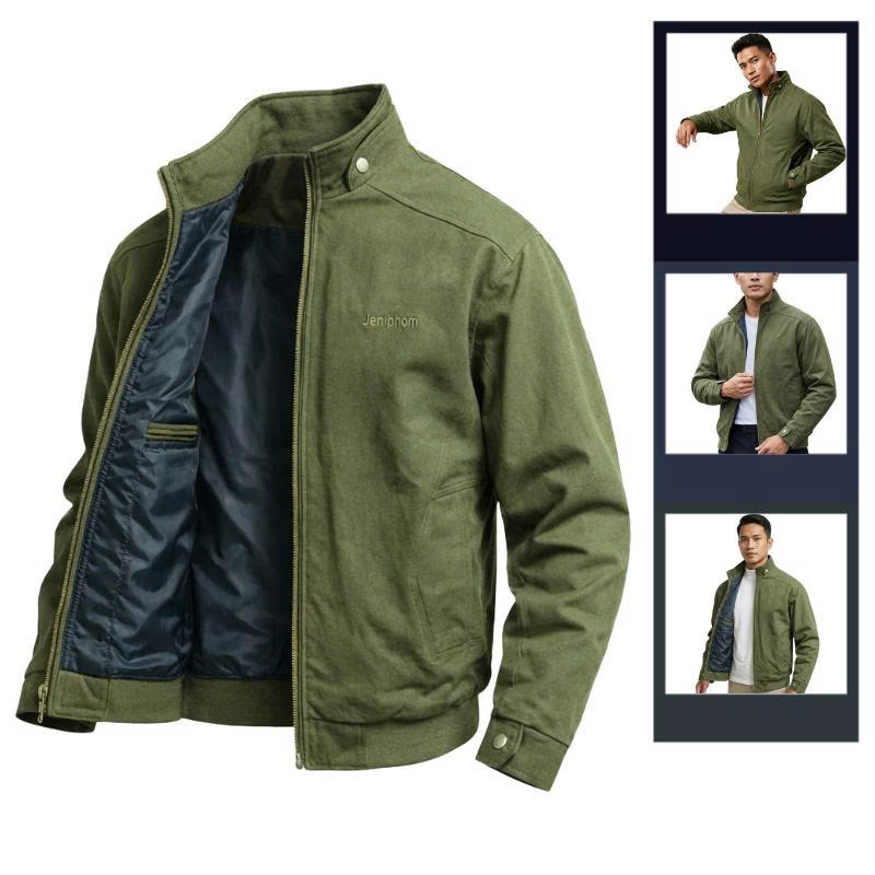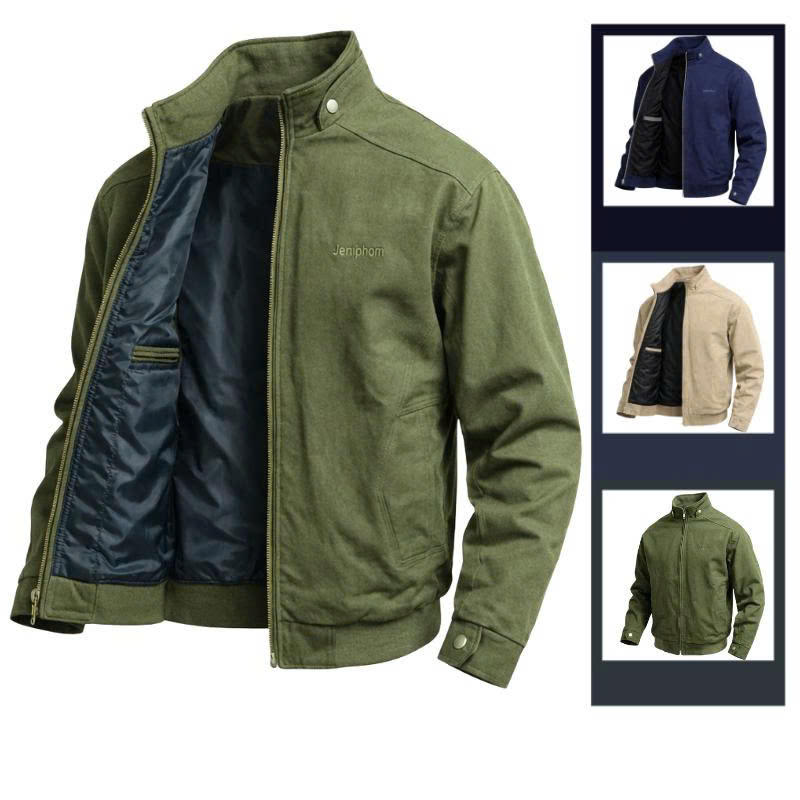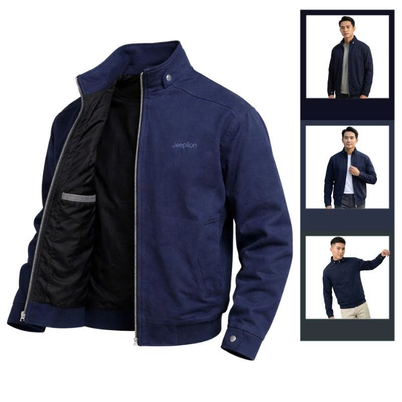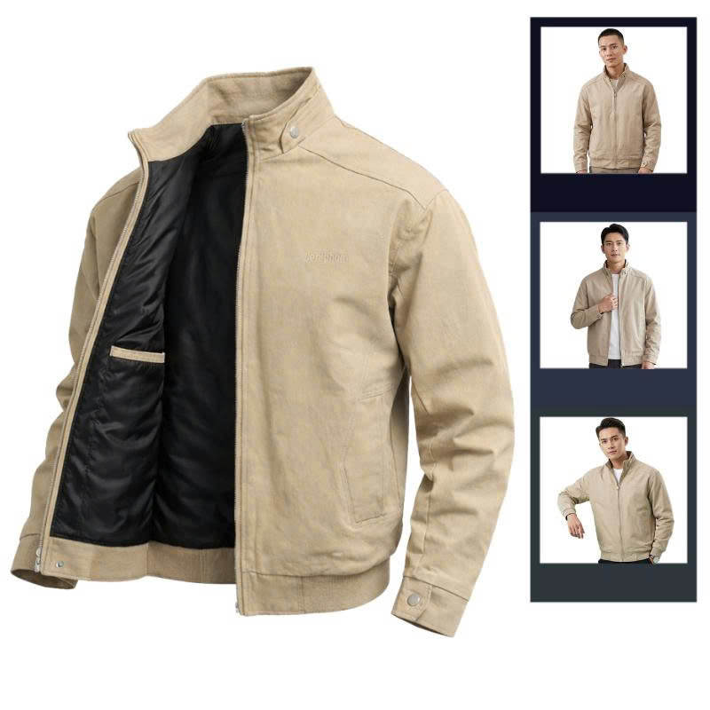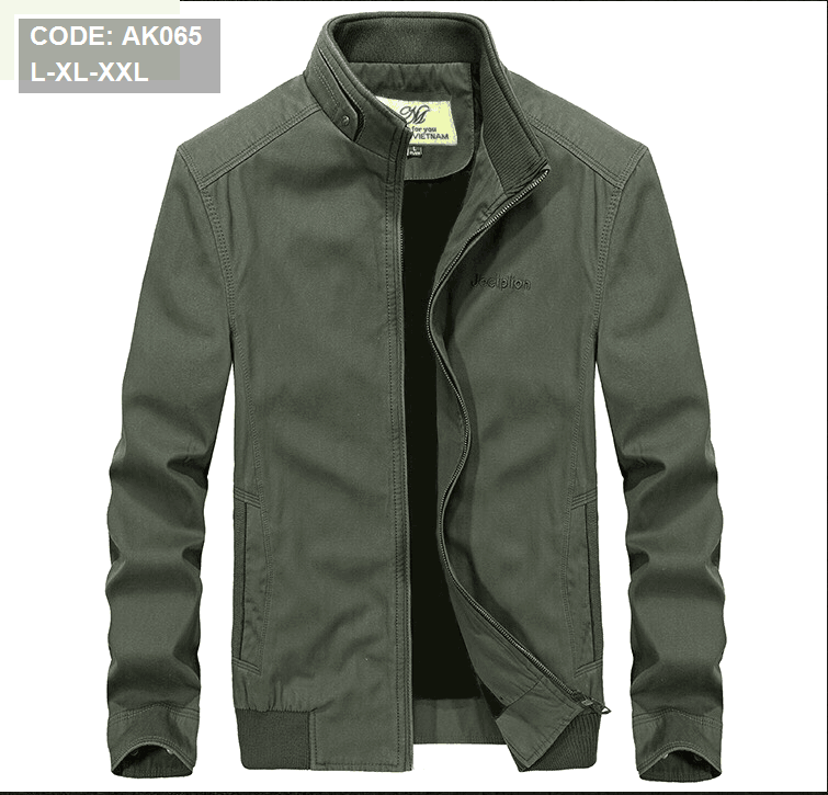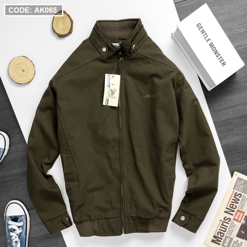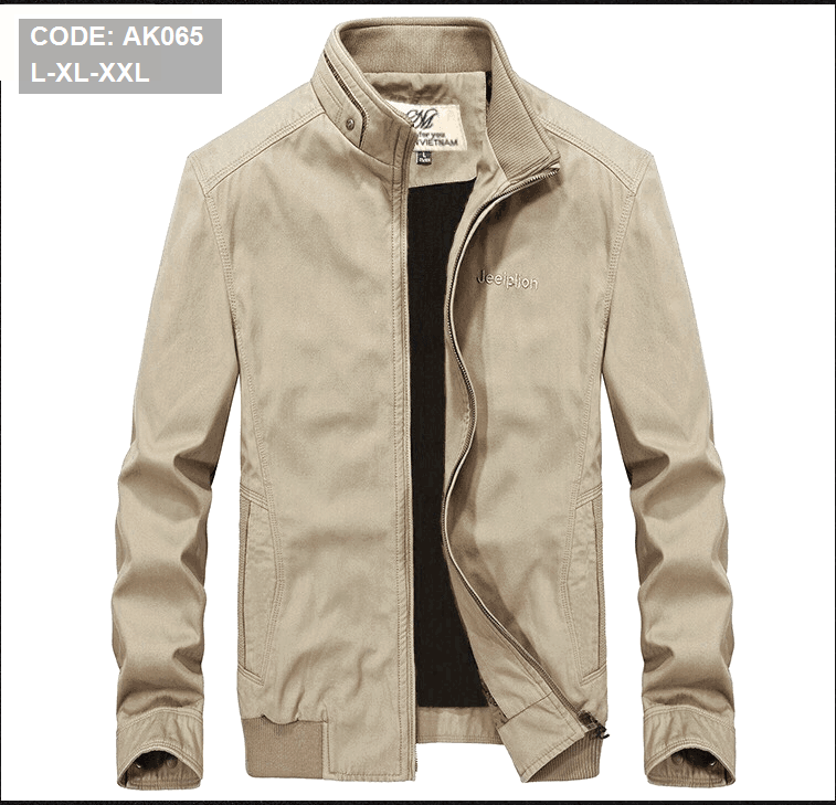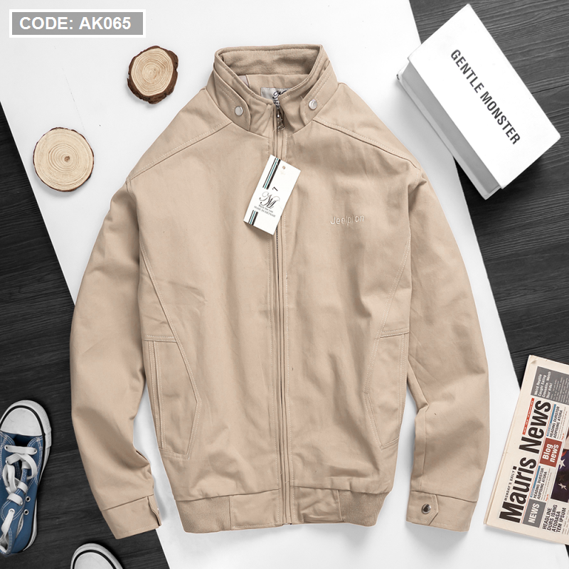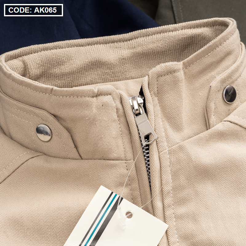 Áo Khoác Kaki Nam Cổ Trụ 2 Lớp Thêu Logo