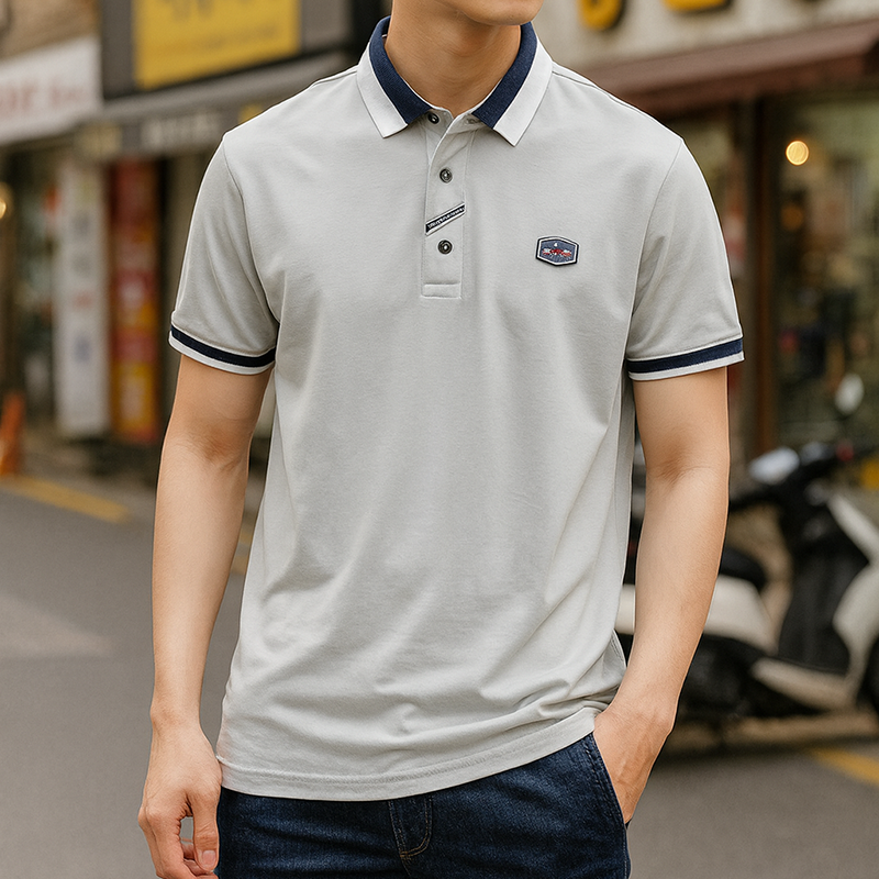 Áo Thun Nam Tay Ngắn Cổ Bẻ Viển Bo