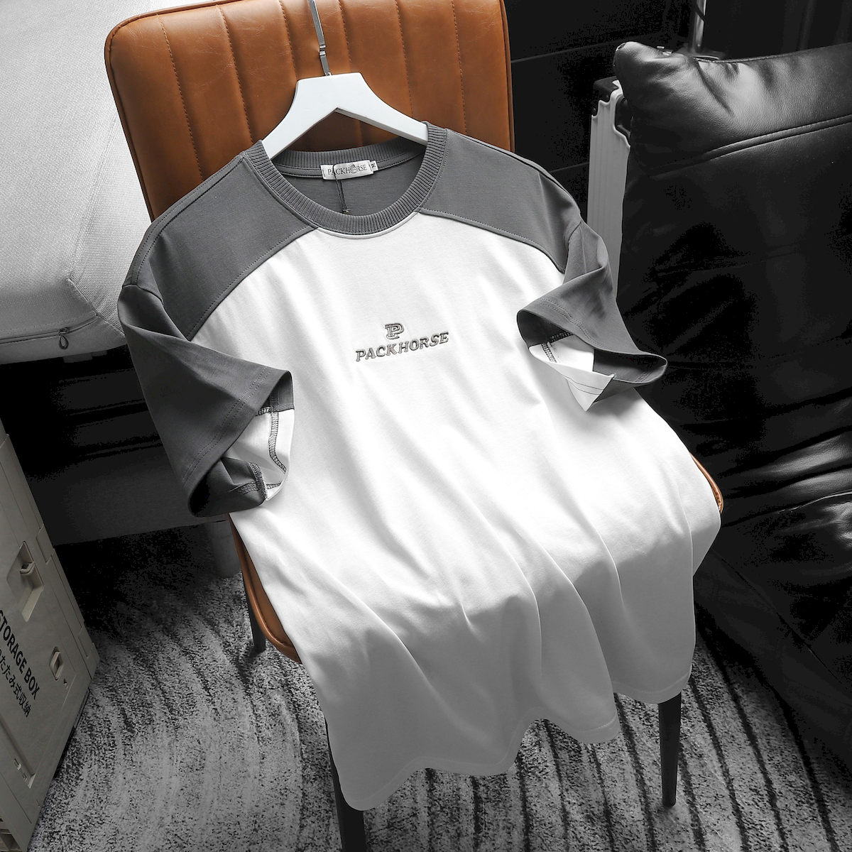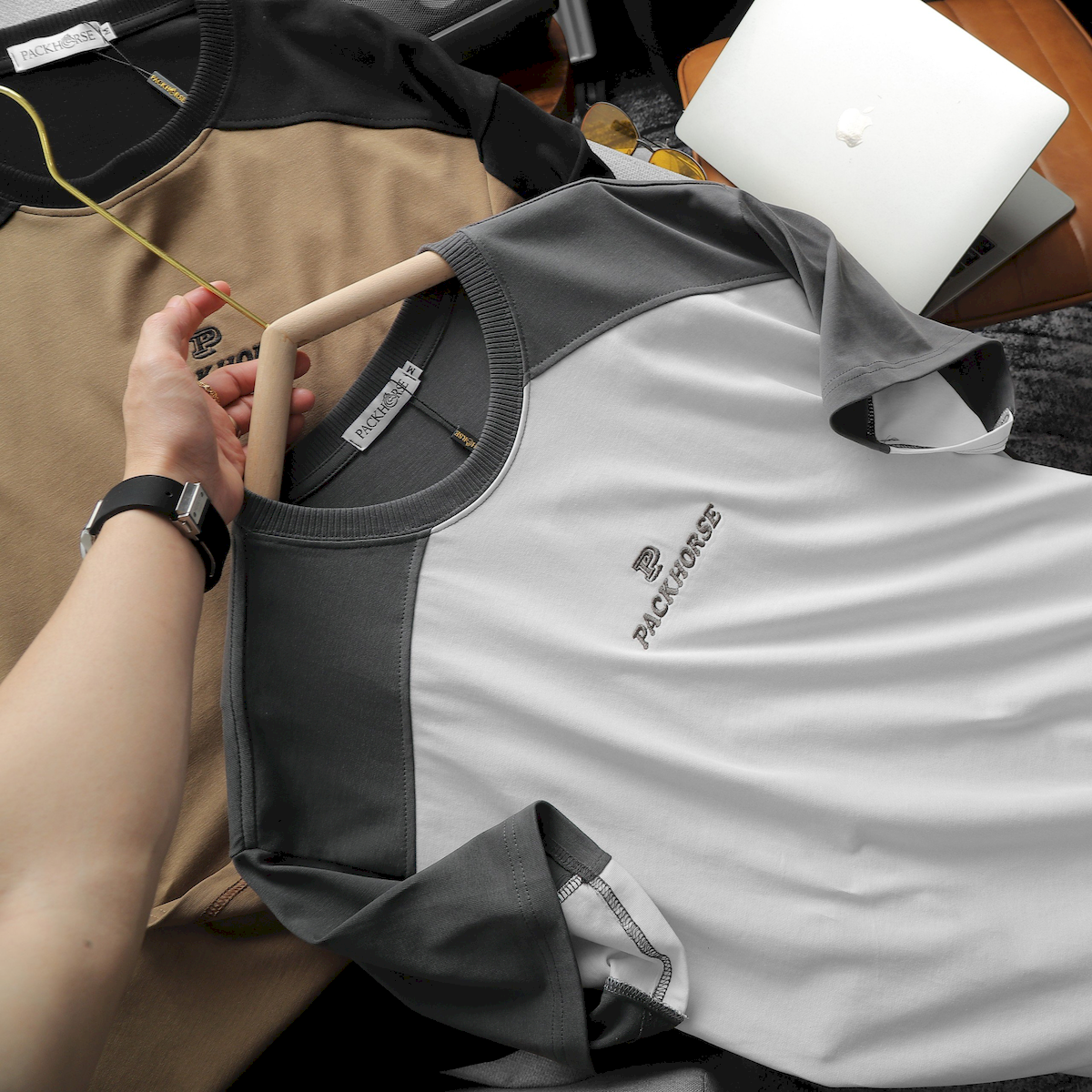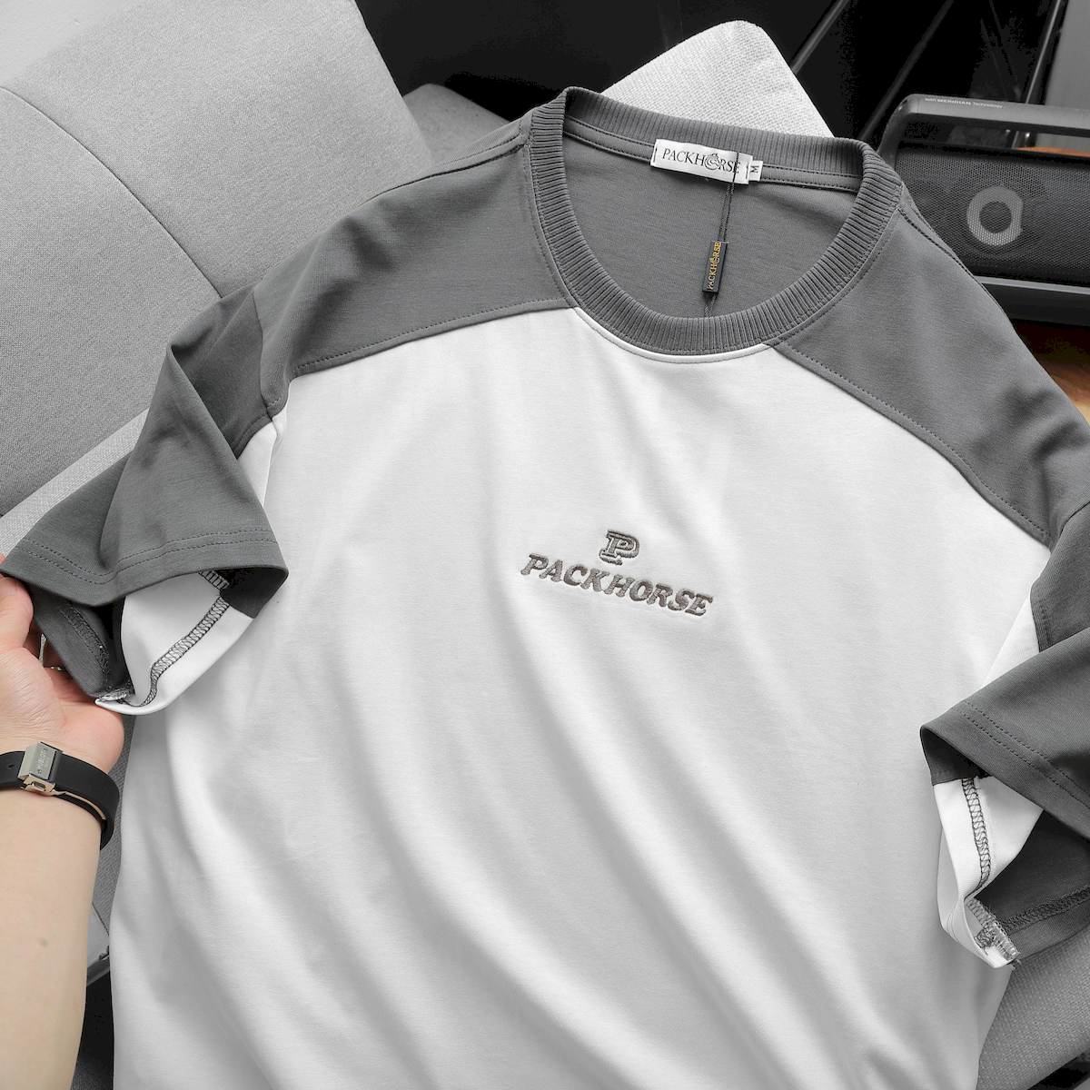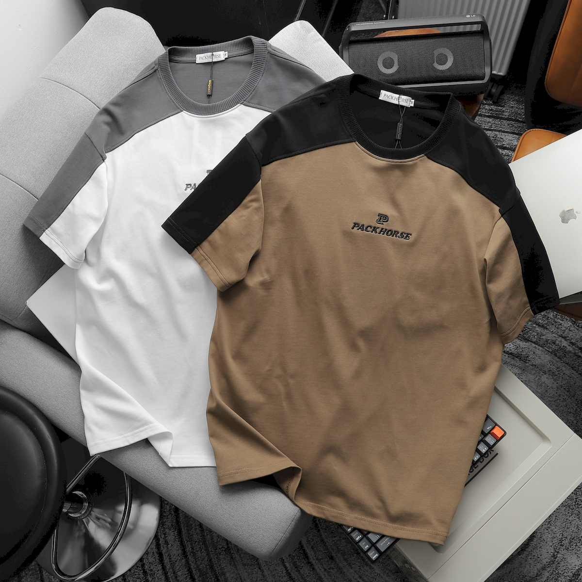 Áo Thun Nam Cổ Tròn Oversize Tay Phối Màu Thêu Chữ PackHorse