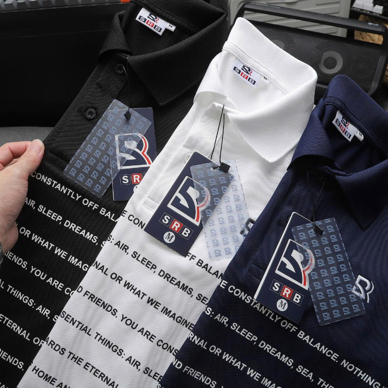 🌟 Áo Thun Nam Polo Cổ Bẻ Thêu Logo SRB Sọc Chữ – Cá Tính, Trẻ Trung 🌟
