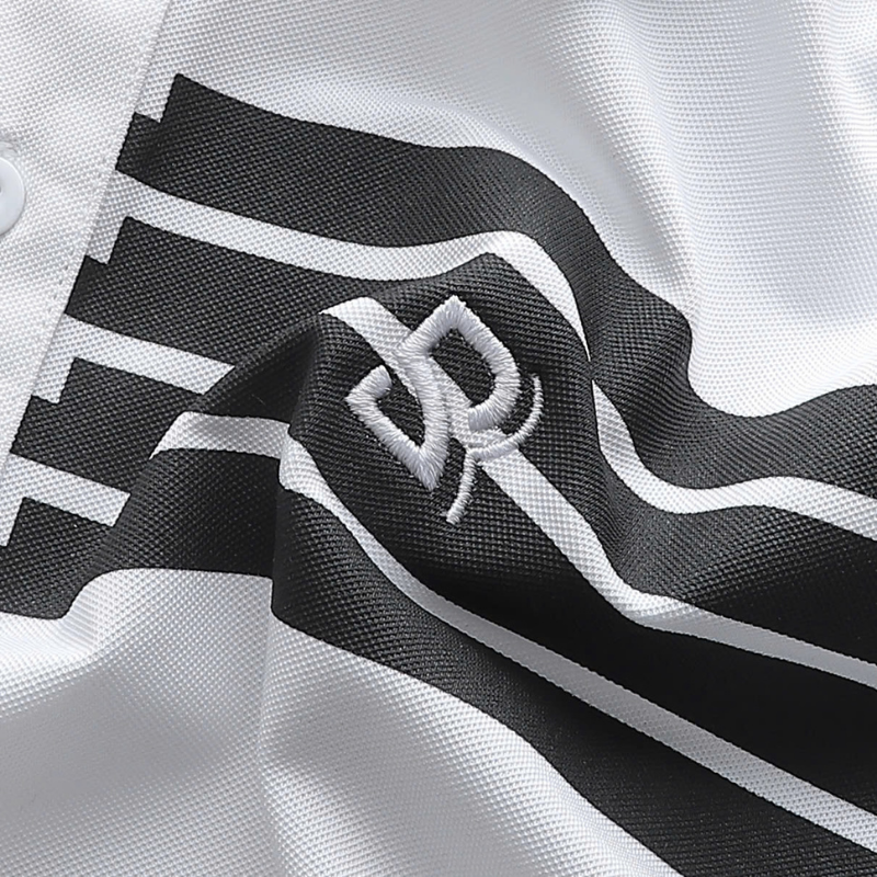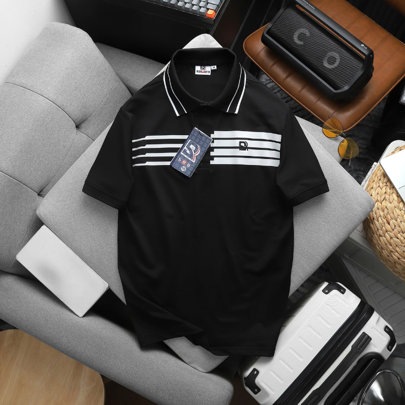 Khác với những mẫu áo trơn đơn điệu, điểm đắt giá của chiếc áo này nằm ở chi tiết phối sọc ngang mảnh kết hợp cùng viền cổ tương phản. Sự sắp xếp các đường kẻ đối xứng giúp tôn lên bờ vai rộng, tạo hiệu ứng thị giác giúp vóc dáng trông cân đối và phong độ hơn. Đây là thiết kế mang hơi hướng cổ điển nhưng không bao giờ lỗi mốt, cực kỳ dễ mặc và không kén dáng.