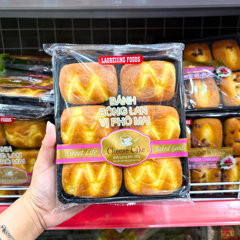 Bánh Bông Lan Tươi Laobeijing Foods Vị Phô Mai Khay 6 Cái (183g x 24 Khay)