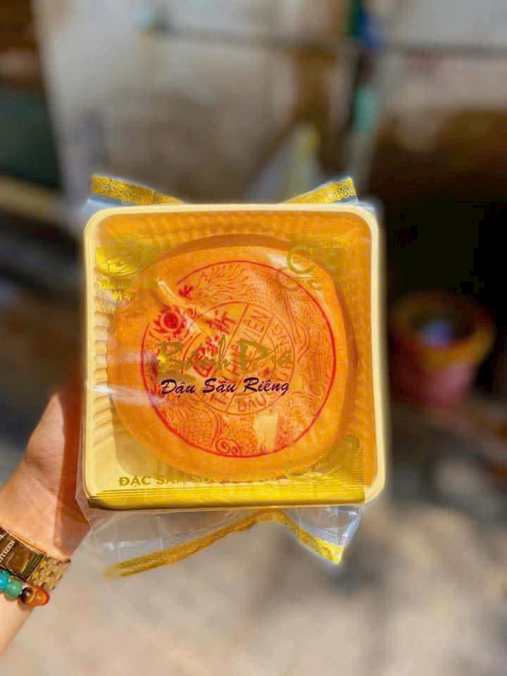 Nguyên liệu: Đậu xanh 18,2%, sầu riêng 11%, bột mì, dầu olein tinh luyện, lòng đỏ hột vịt muối, đường tinh luyện, mứt bí, nước…