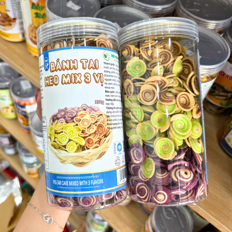 Bánh Tai Heo Mix 3 Vị Caramel, Khoai Môn, Trà Xanh 350g Thơm Ngon – Hũ Pet