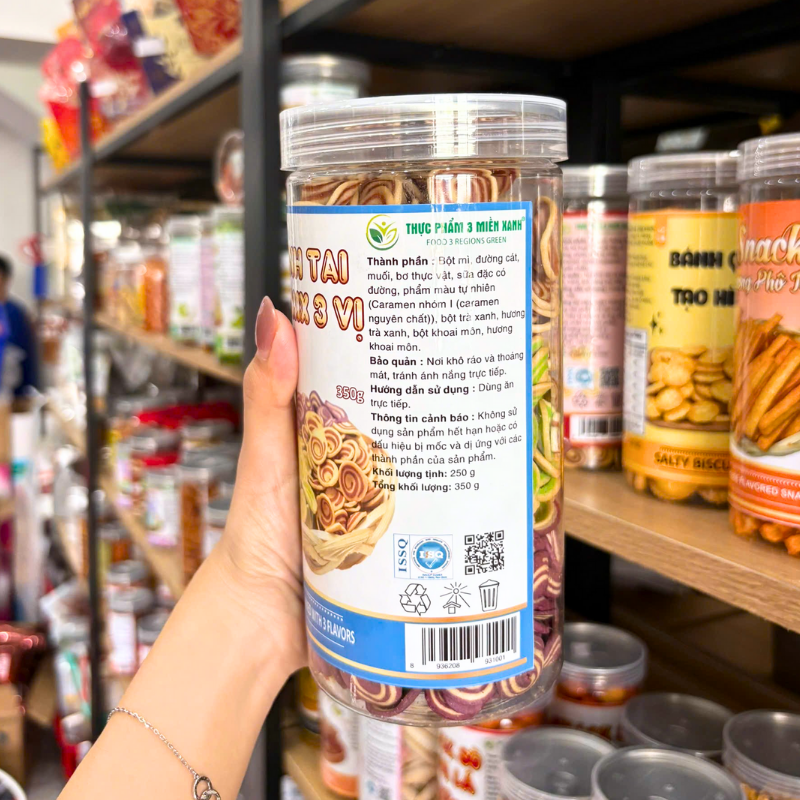 Bánh Tai Heo Mix 3 Vị Caramel, Khoai Môn, Trà Xanh 350g Thơm Ngon - Hũ Pet