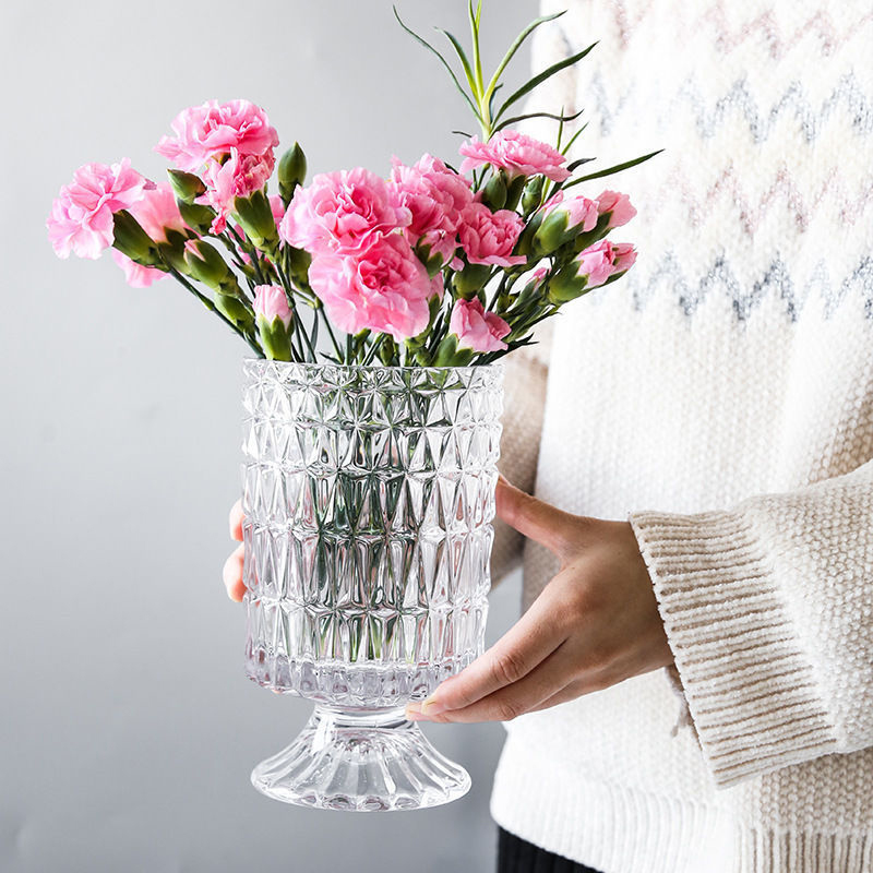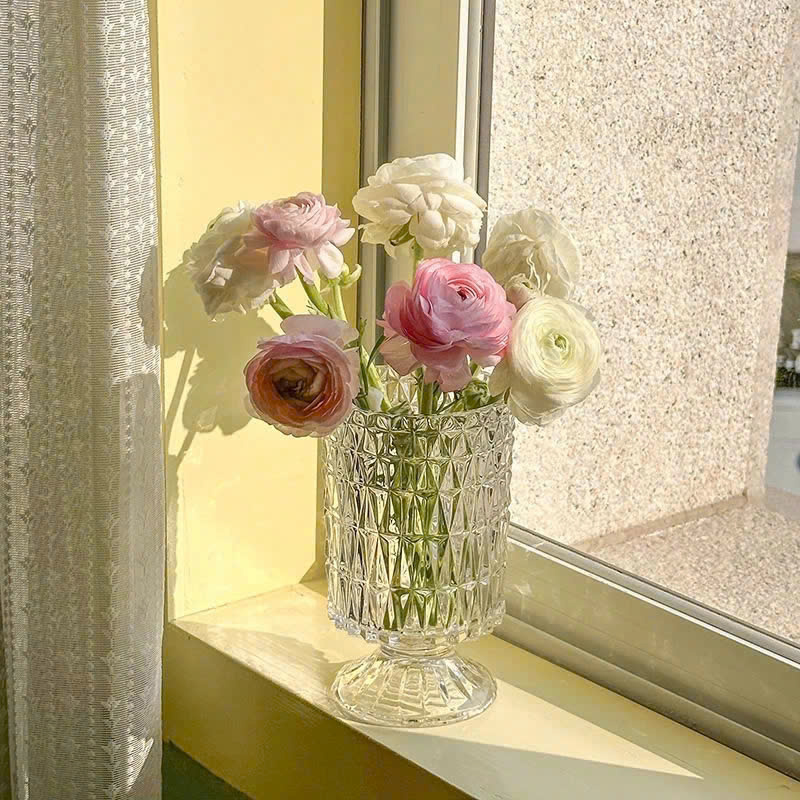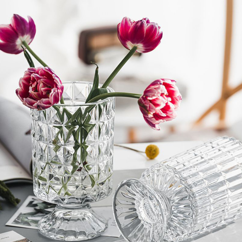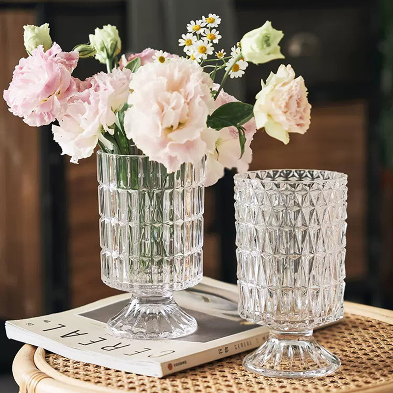 ❌❌Bình hoa thủy tinh chân đế 19cm, lọ hoa phong cách Châu Âu trang trí phòng ngủ, decor phòng khách❌❌