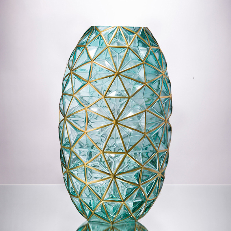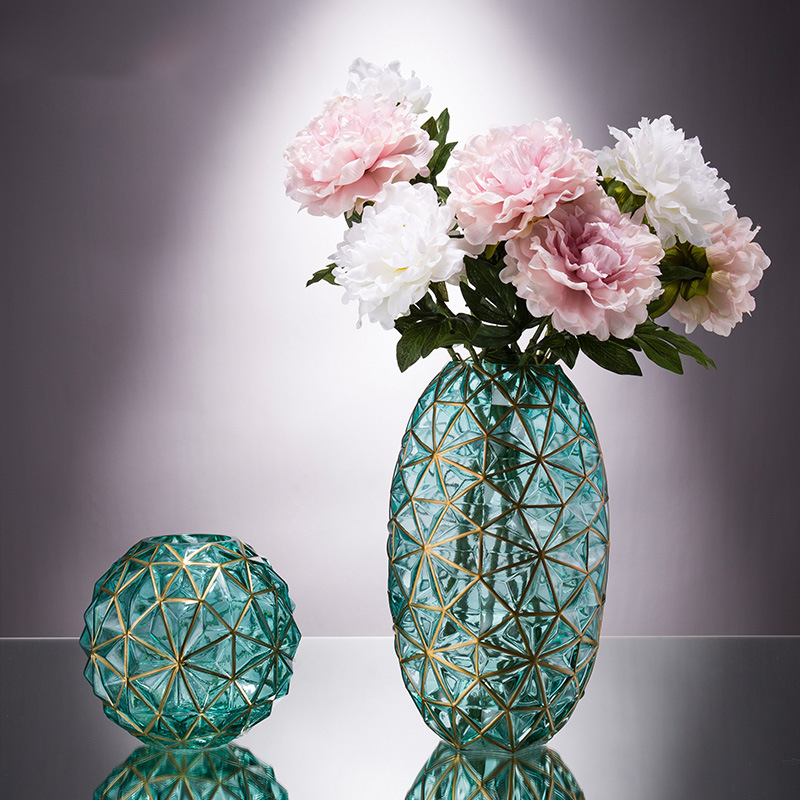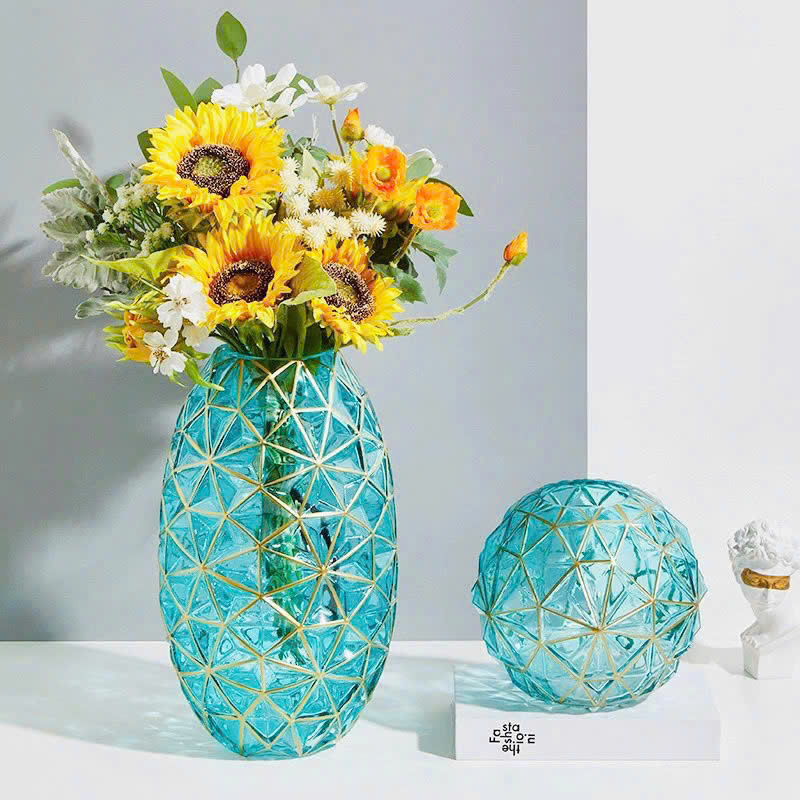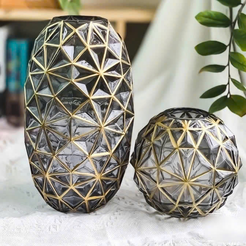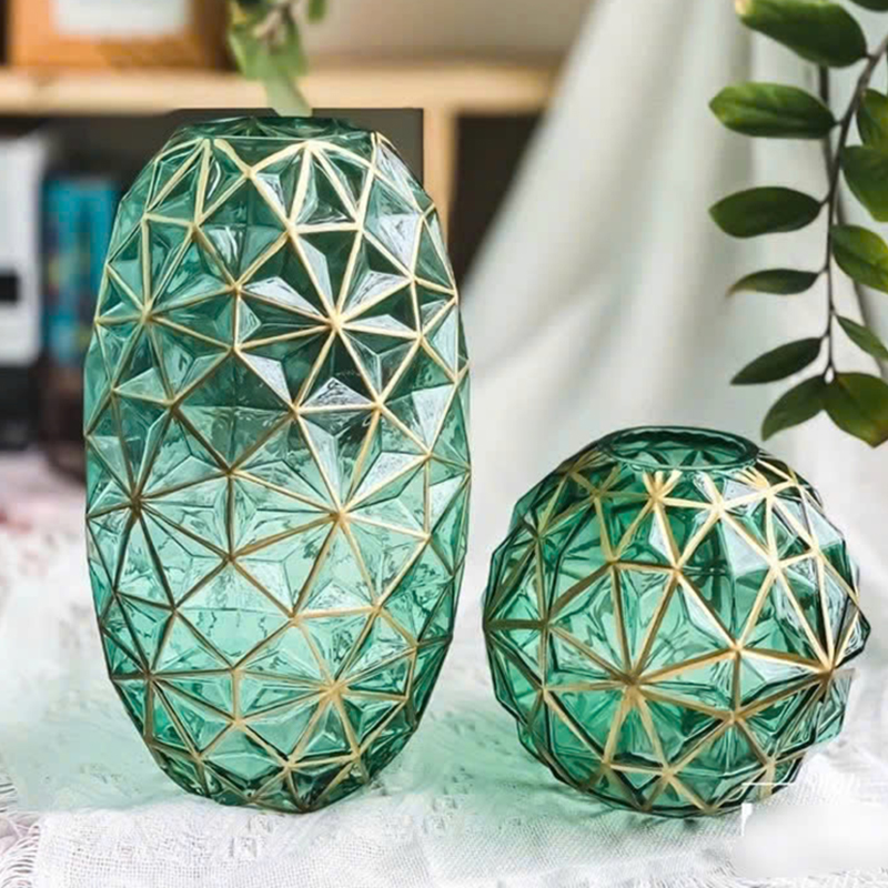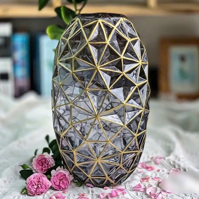 ❌❌Lọ Hoa Thủy Tinh Viền Vàng 35cm Kiểu Dáng Hình Học Sang Trọng Phong Cách Châu Âu❌❌