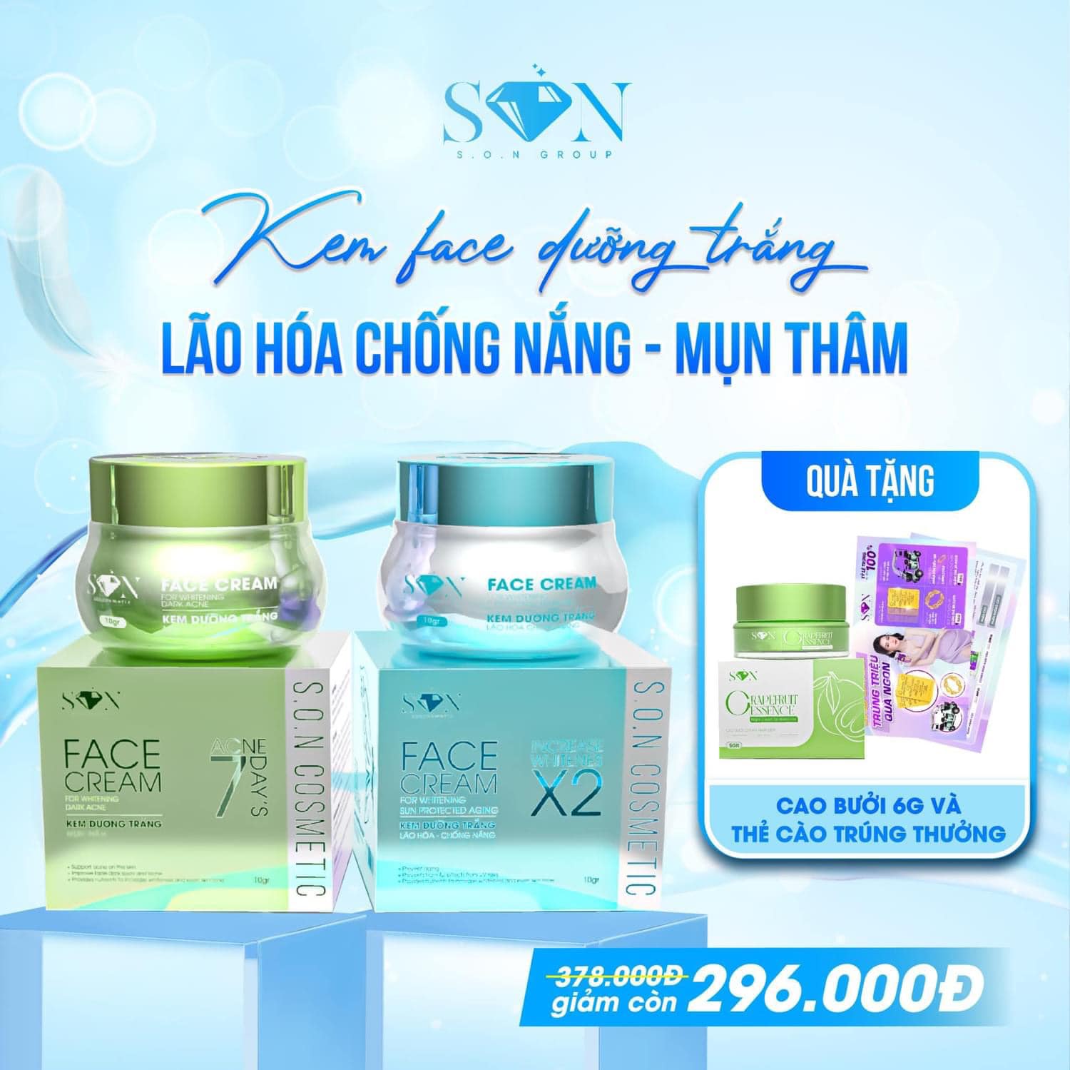 Chỗ sỉ combo Kem Face Hỗ Trợ Giảm Mụn Xanh Lá + Xanh Biển SON Cosmetic Tặng Cao Bưởi Phiên Bản Mới
