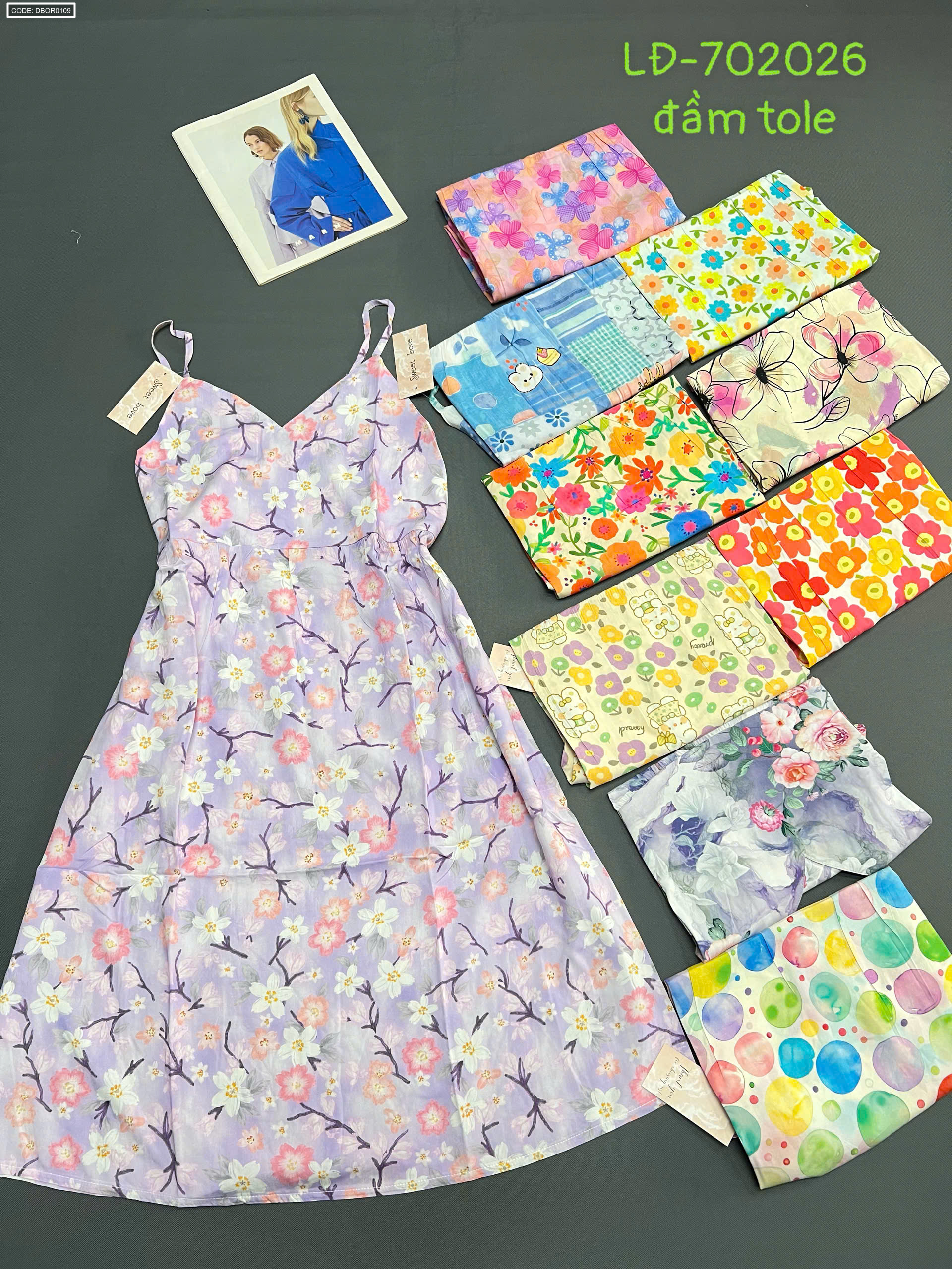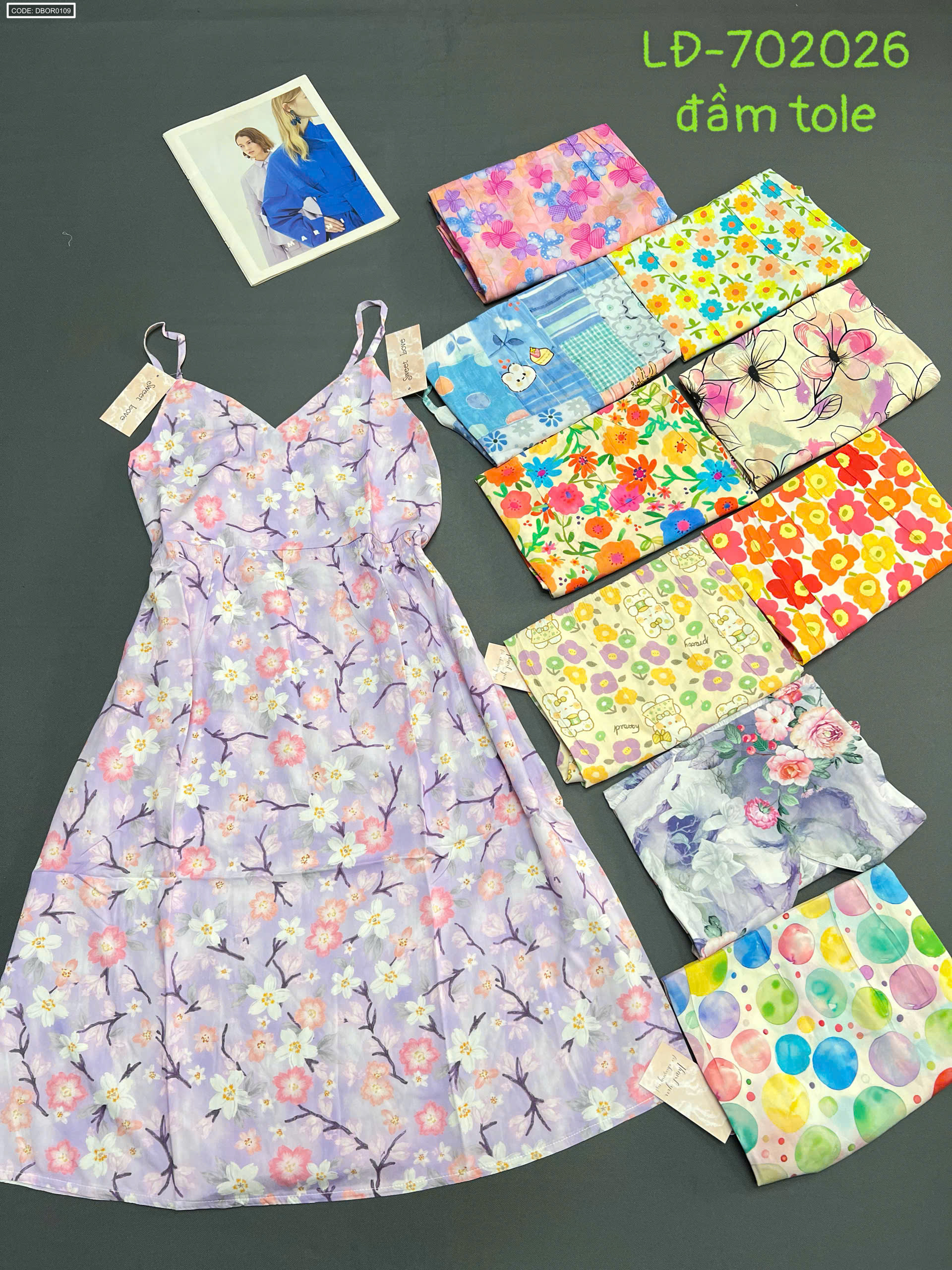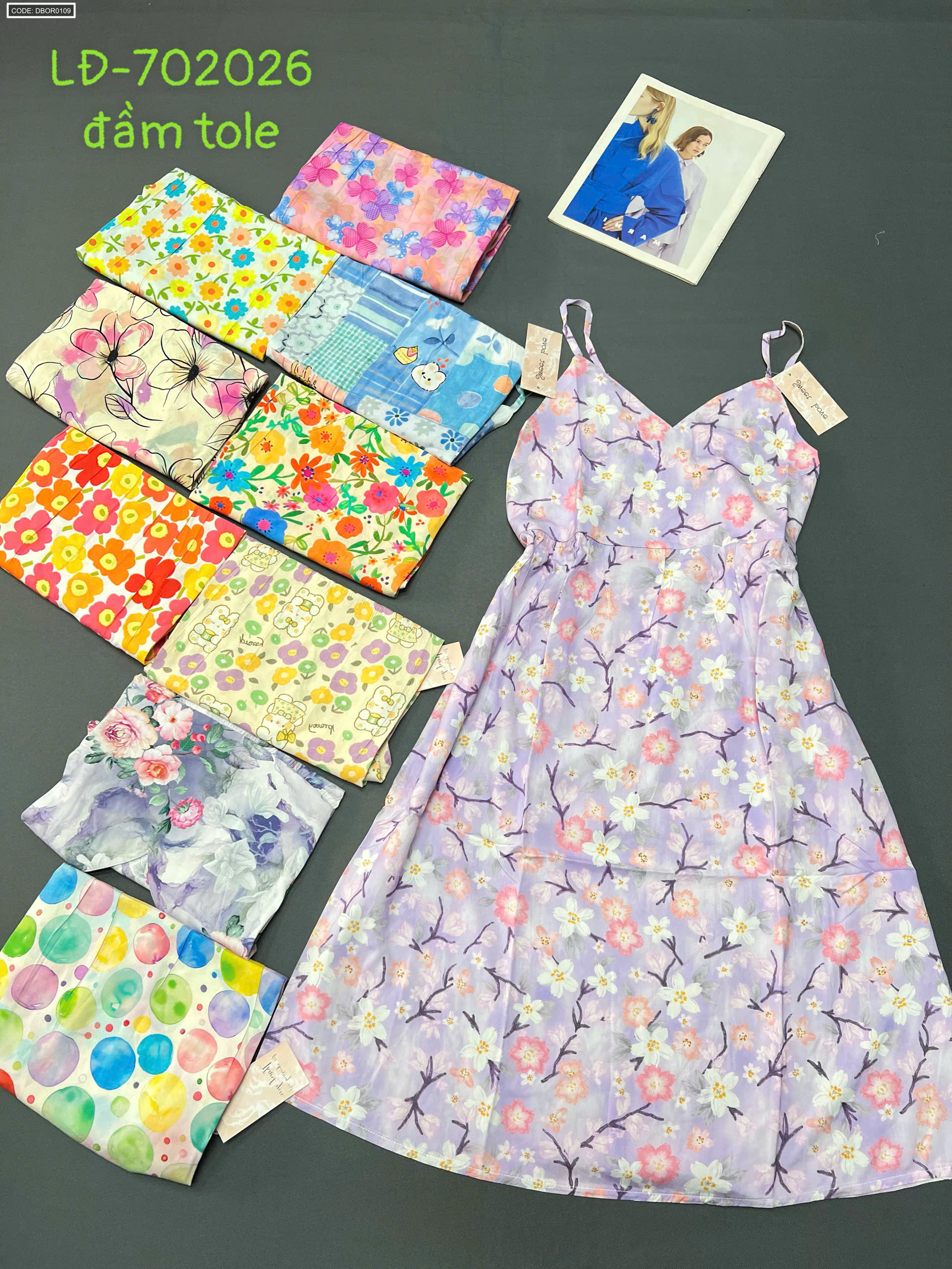 Chỗ sỉ đầm nữ 2 dây vải tole mát LĐ-702026