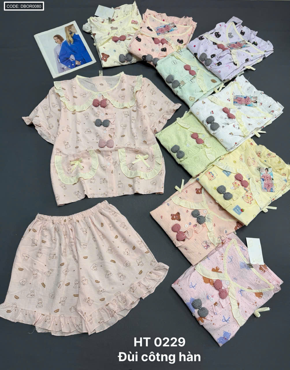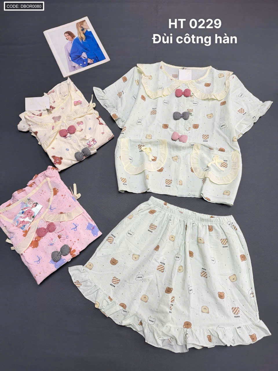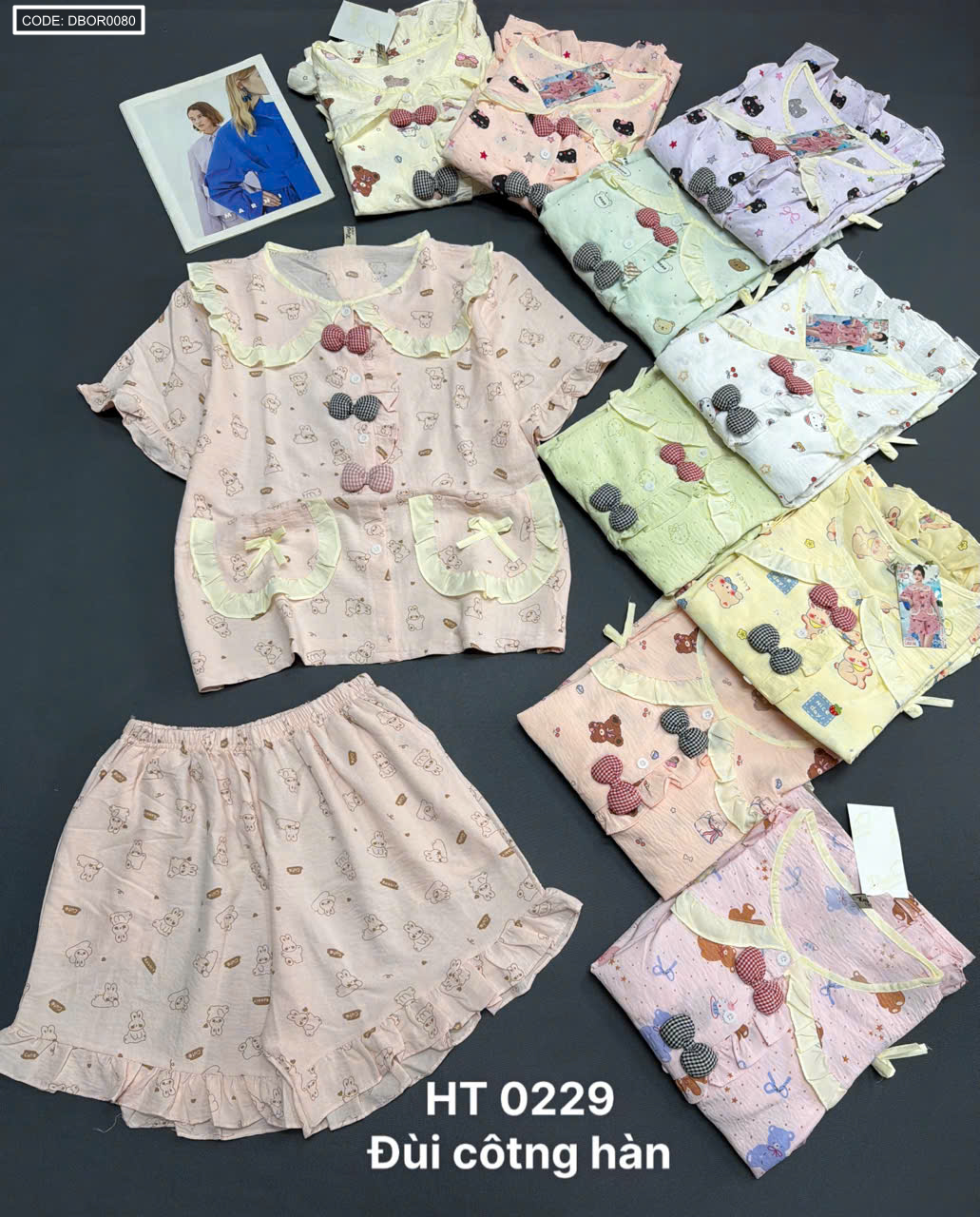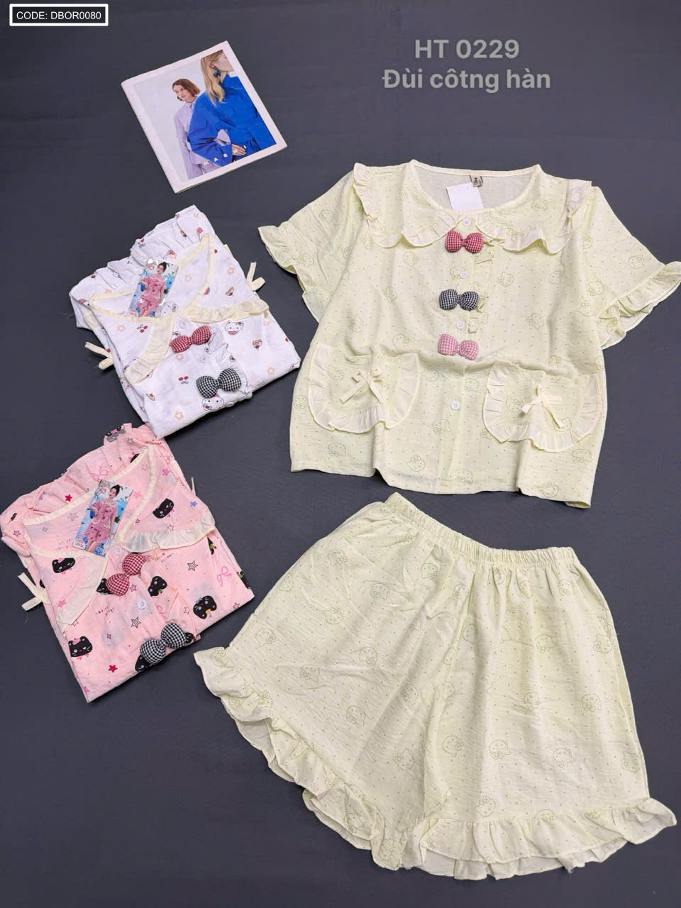 Chỗ sỉ đồ bộ nữ tiểu thư cổ bèo quần đùi HT 0229