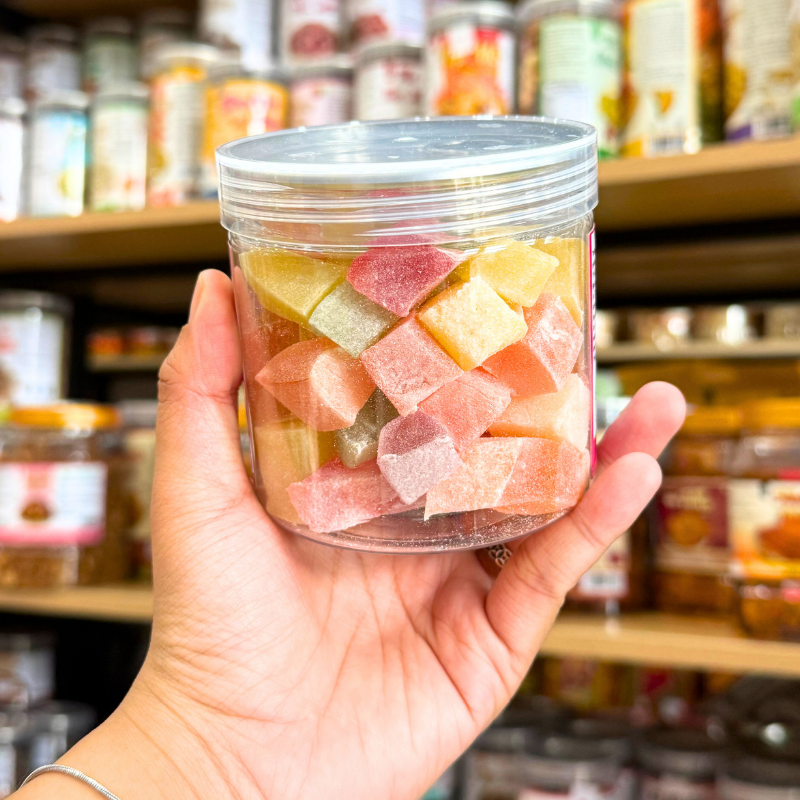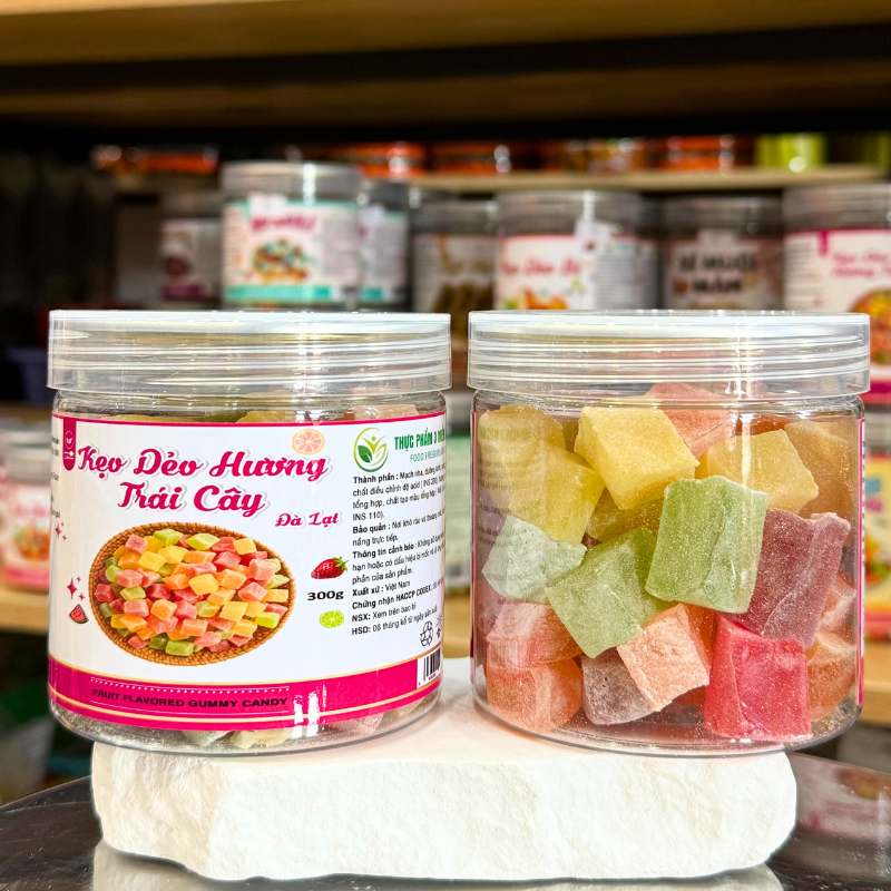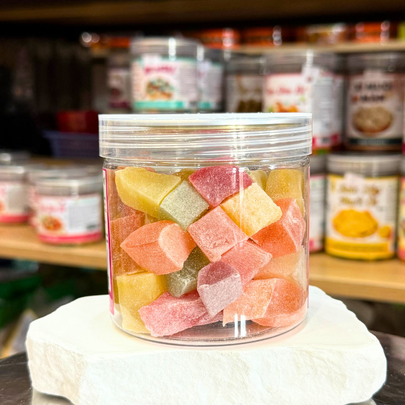 Chỗ sỉ kẹo Dẻo Vuông Hương Trái Cây (Kẹo Dẻo Đà Lạt) Mini 300g – Hộp Pet
