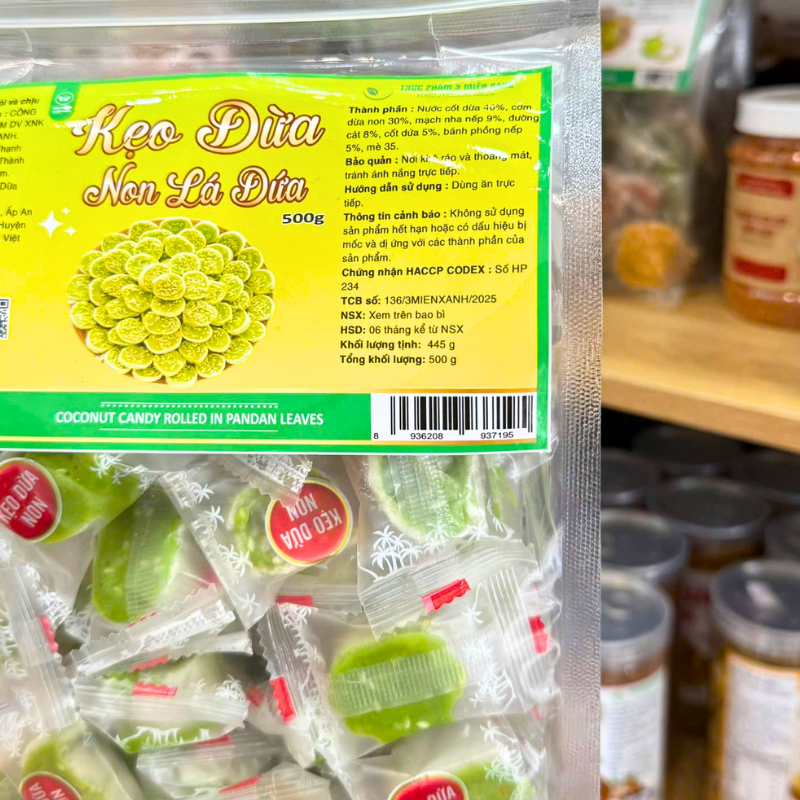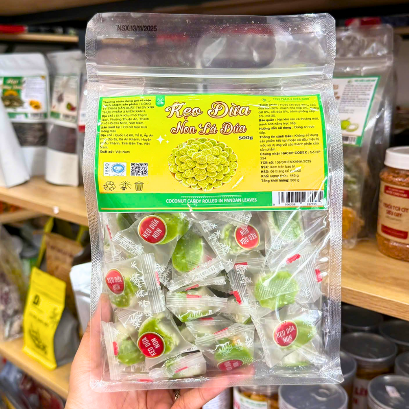 Chỗ sỉ kẹo Dừa Non Lá Dứa 500g – Túi Zip Trong
