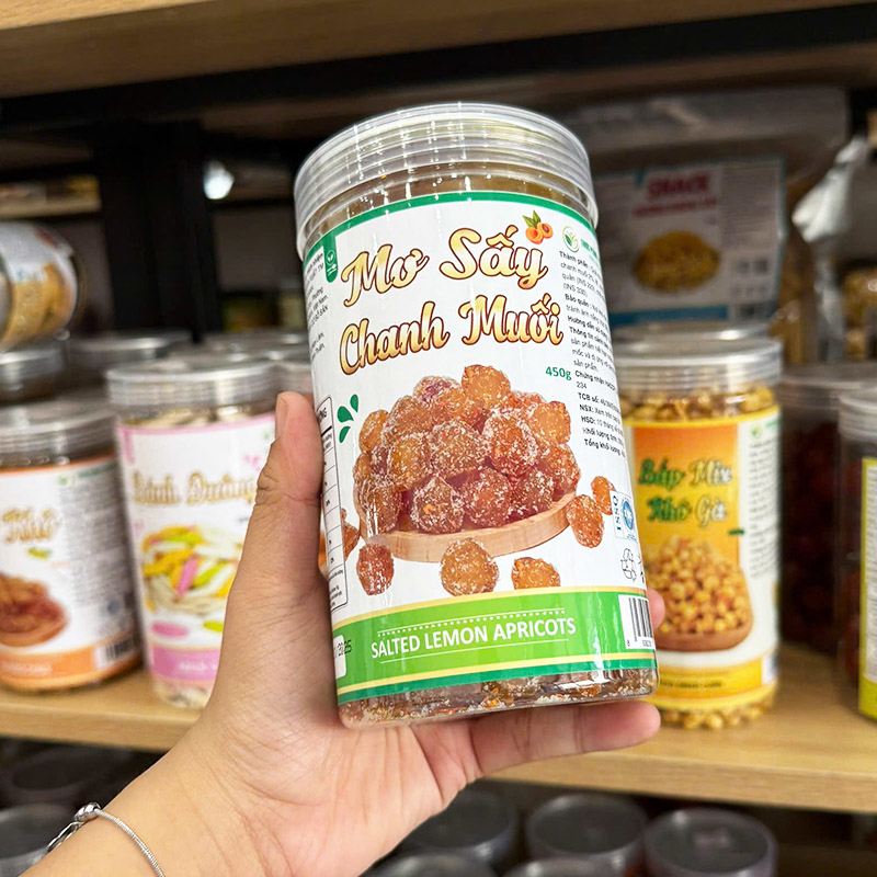 Chỗ sỉ mơ Sấy Chanh Muối Thơm Ngon 450g Hộp Pet