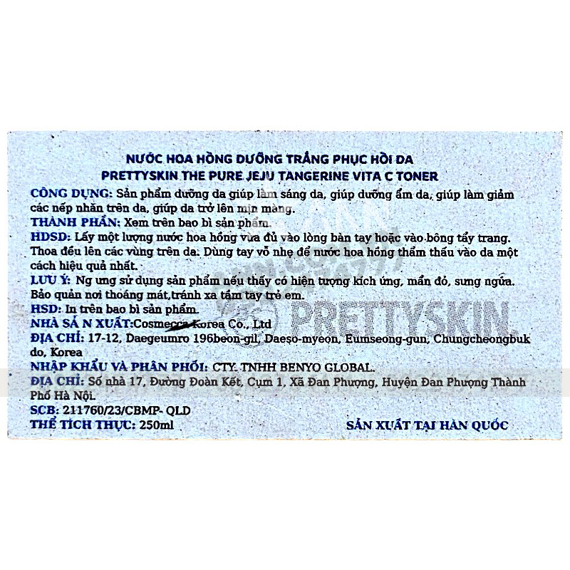 Chỗ sỉ nước Hoa Hồng Prettyskin The Pure Jeju Tangerine Vita C Toner 250ml