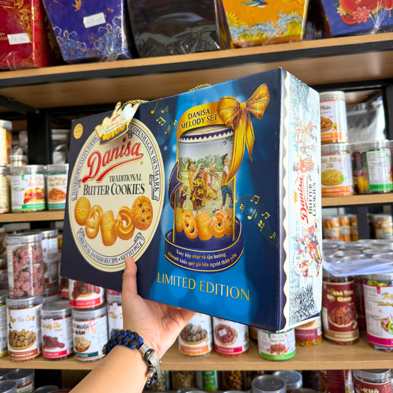 Chuyên sỉ bánh Danisa Gold Hộp Thiếc – Bánh Quy Bơ Danisa Bản Limitied Edition 992g/Hộp (1 Hộp Thiếc x 908g + 1 Lon Thiếc Có Phát Nhạc 84g)