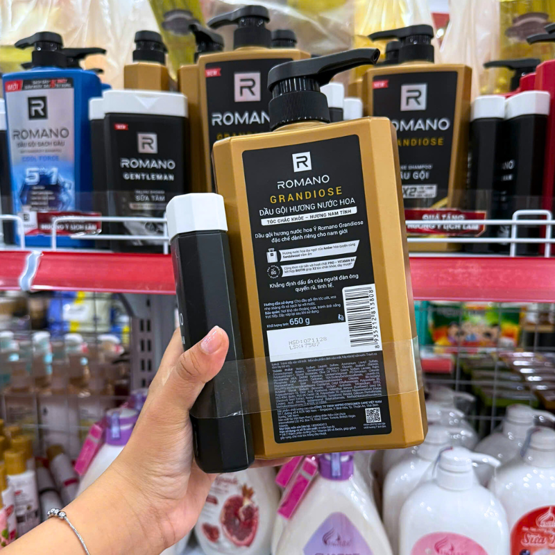 Chuyên sỉ dầu Gội Romano Grandiose 650g – Dầu Gội Nam Chai Vàng (Tặng Sữa Tắm Sạch Sảng Khoái)