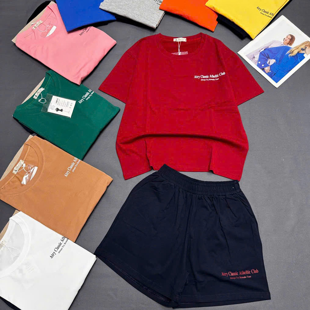 Chuyên sỉ đồ Bộ Nữ Áo Cổ Tròn Tay Ngắn Quần Đùi Vải Cotton Mịn Mát Size 45-62kg