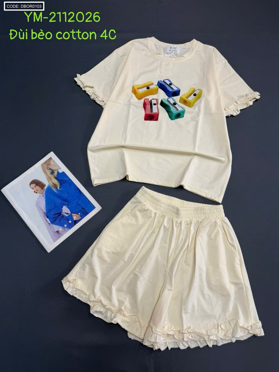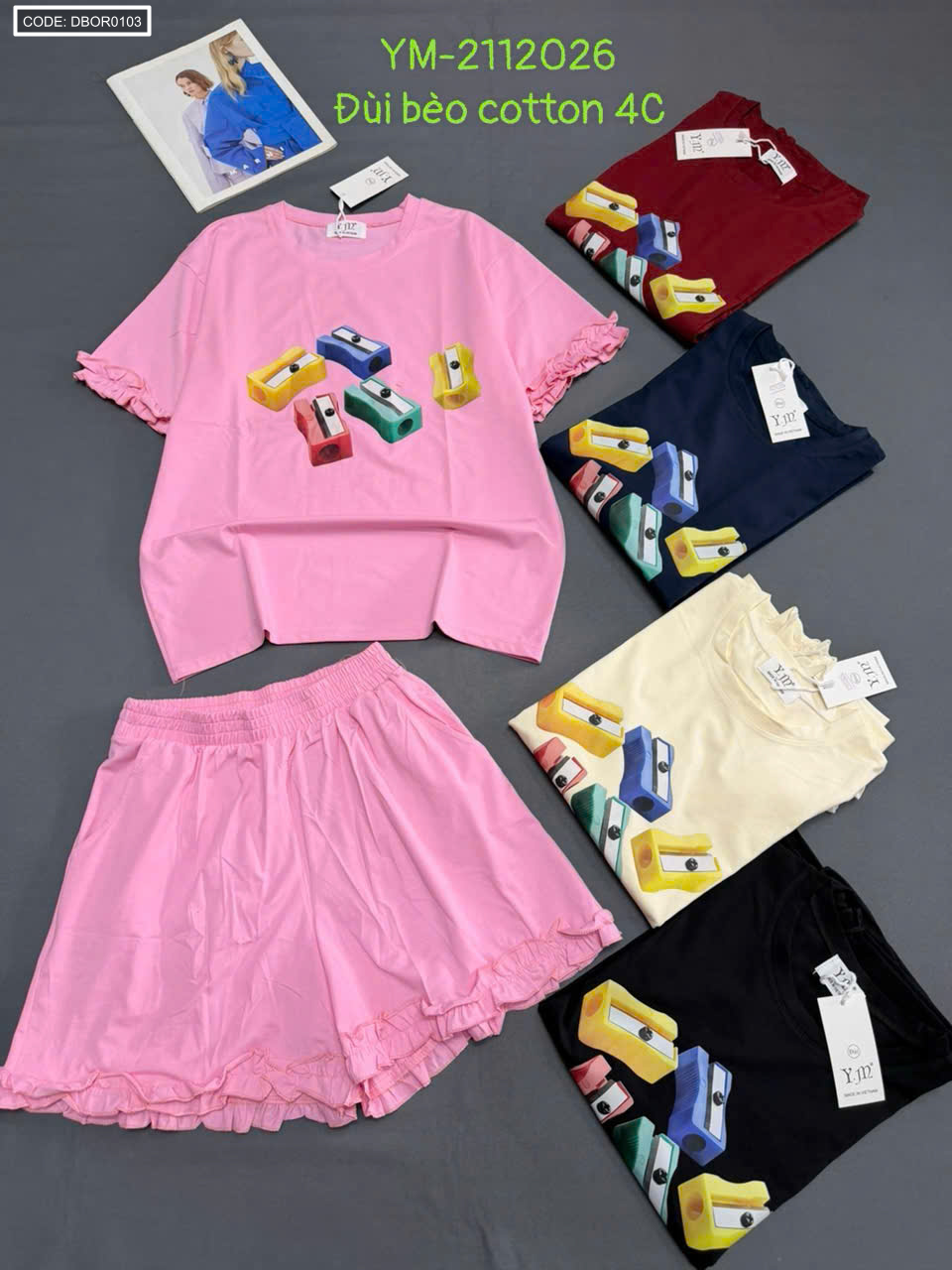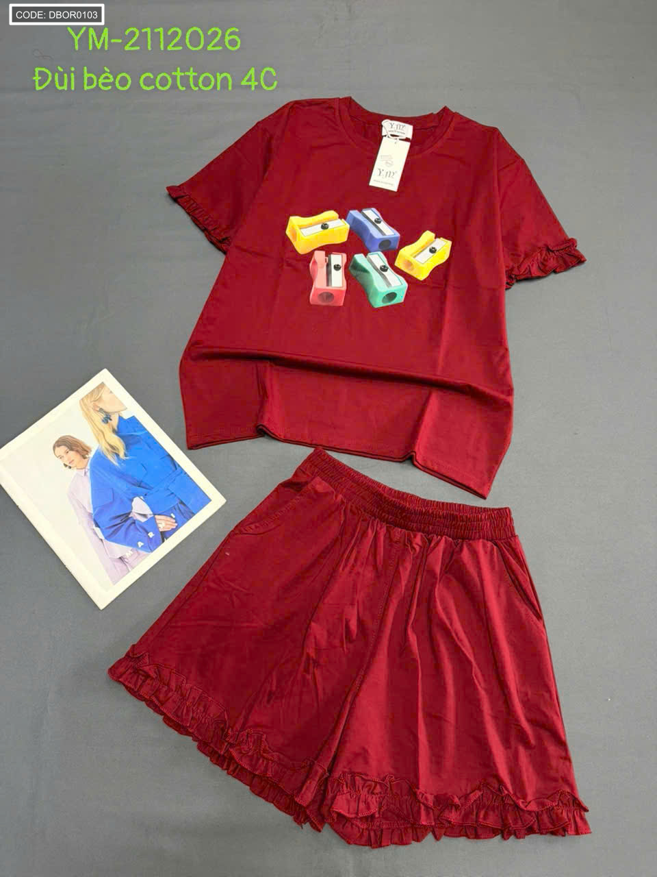 Chuyên sỉ đồ bộ thun nữ áo tay ngắn quần đùi bèo chất cotton 4 chiều