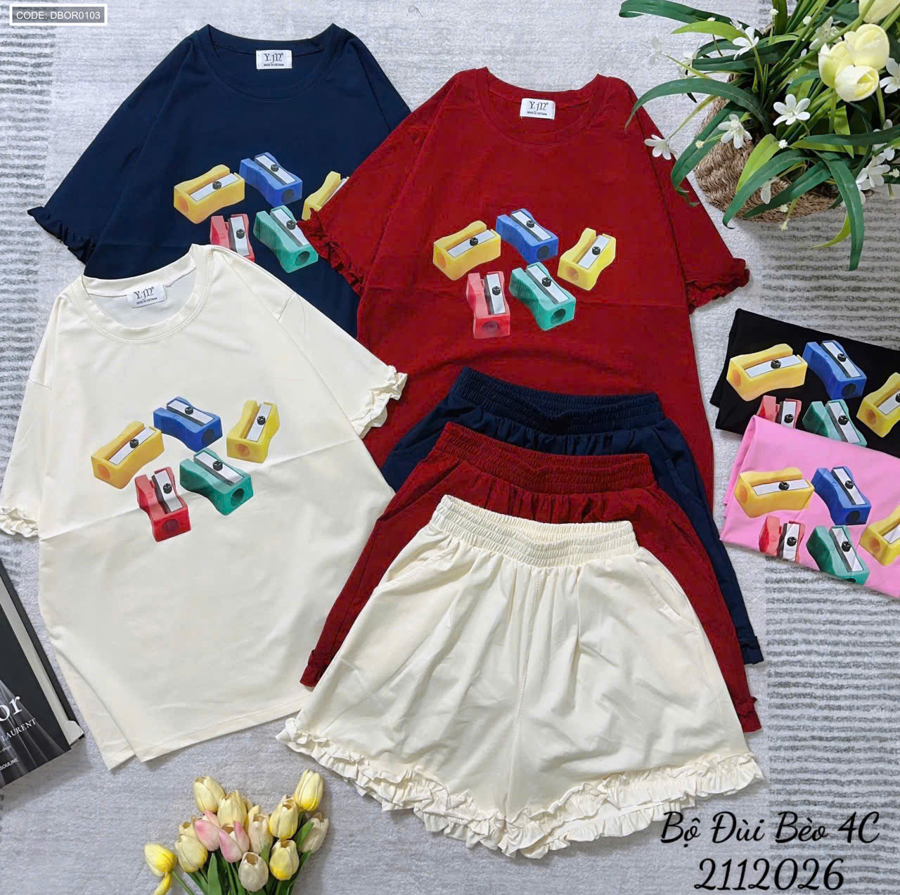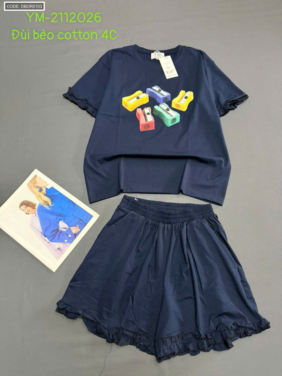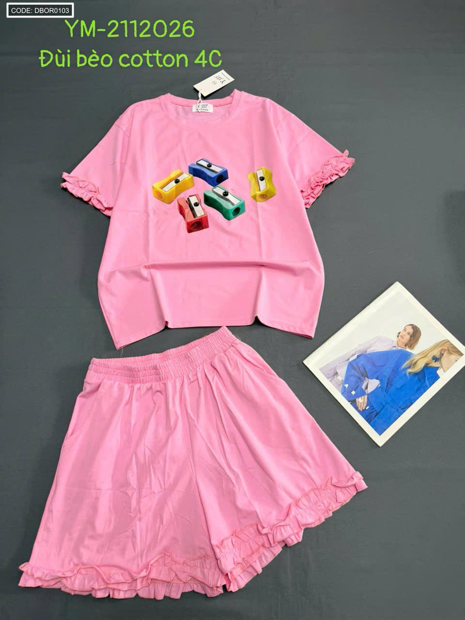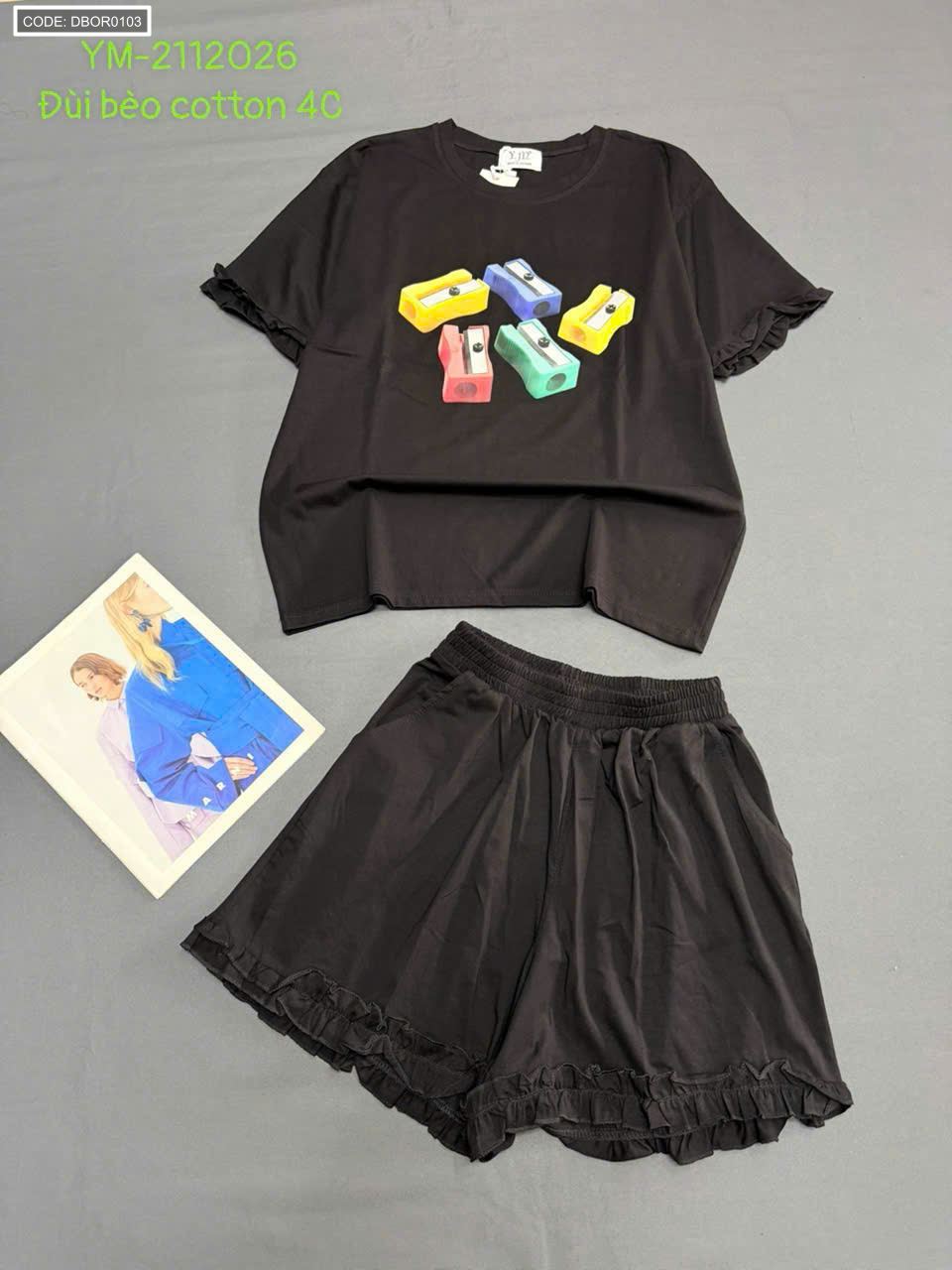 Chuyên sỉ đồ bộ thun nữ áo tay ngắn quần đùi bèo chất cotton 4 chiều