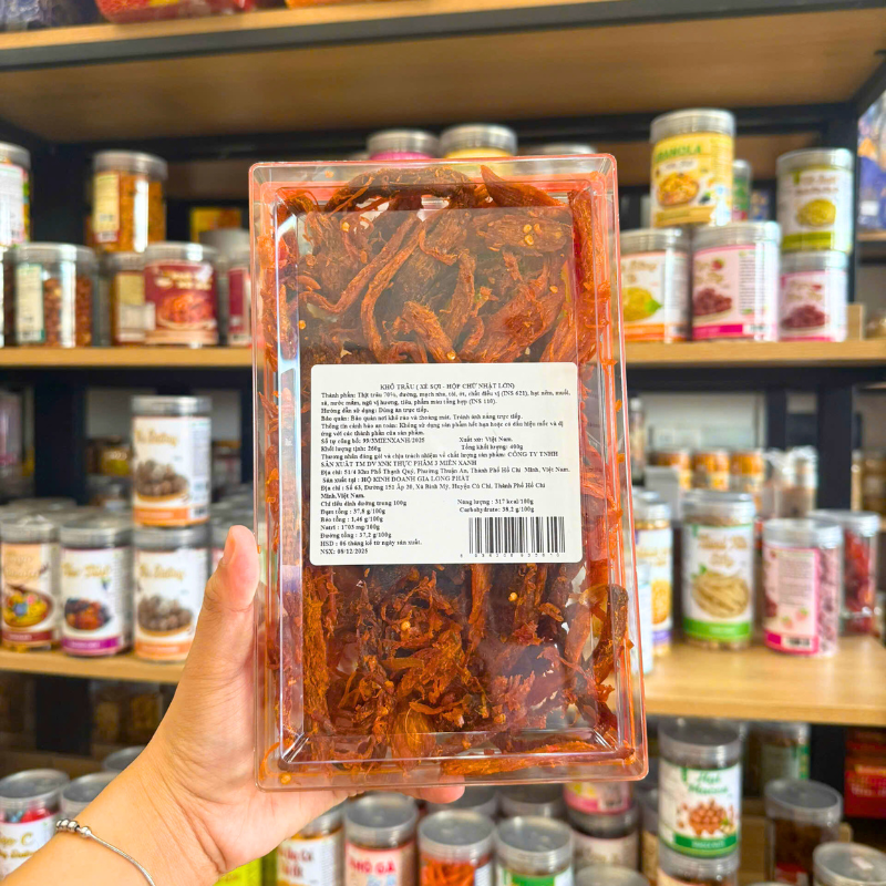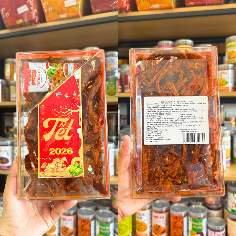 Chuyên sỉ khô Trâu Xé Sợi Tẩm Vị Bò Thơm Ngon 400g – Hộp Chữ Nhật Lớn