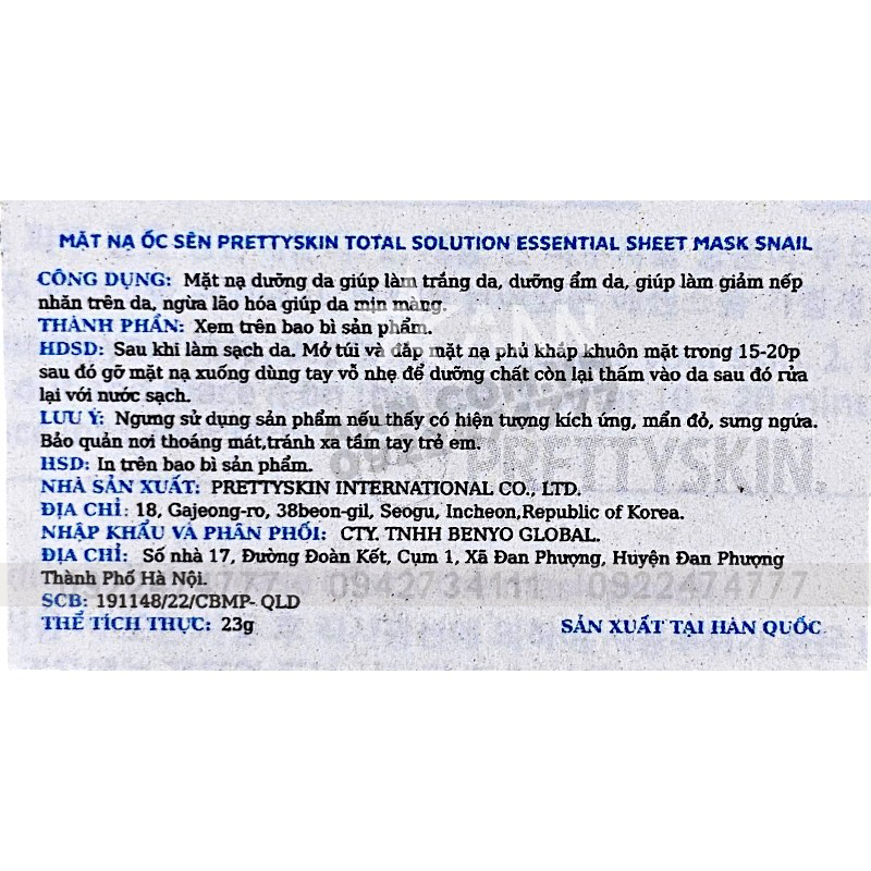 Chuyên sỉ mặt Nạ Ốc Sên Prettyskin Total Solution Essential Sheet Mask Snail – Hộp 10 Miếng