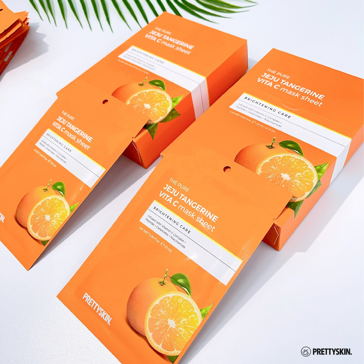 Chuyên sỉ mặt Nạ Vitamin C Prettyskin Jeju Tangerine Hộp 10 miếng