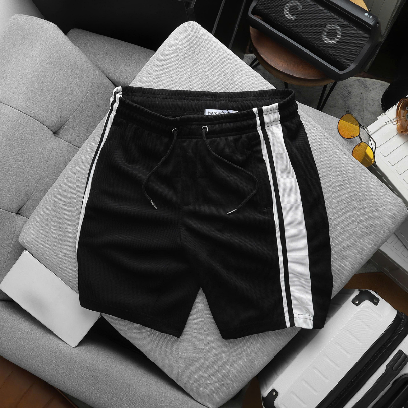 - Quần: Short phối sọc hai bên, cạp chun co giãn, dây rút tùy chỉnh – thoải mái vận động.