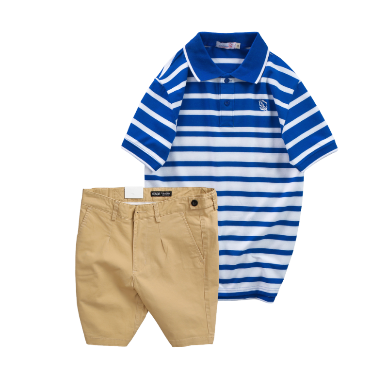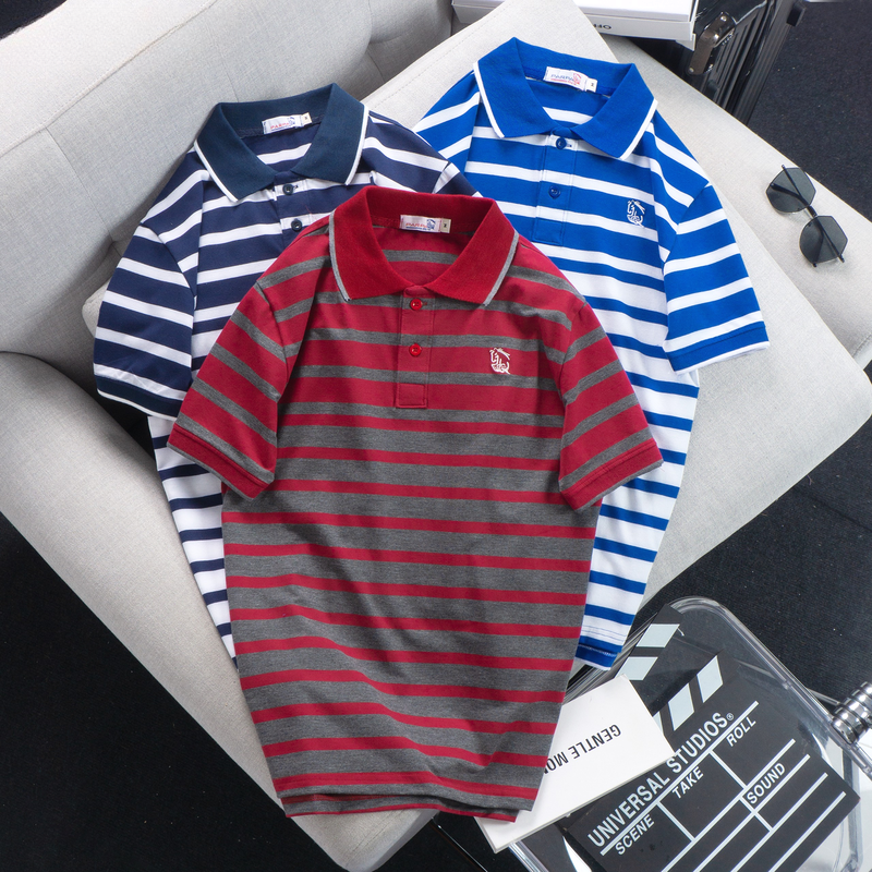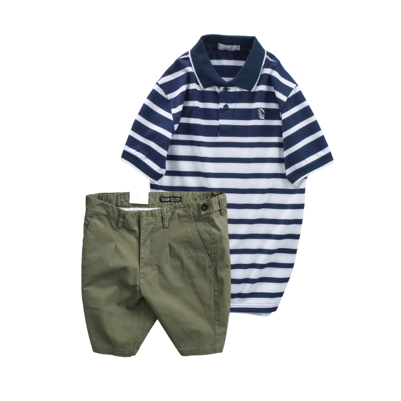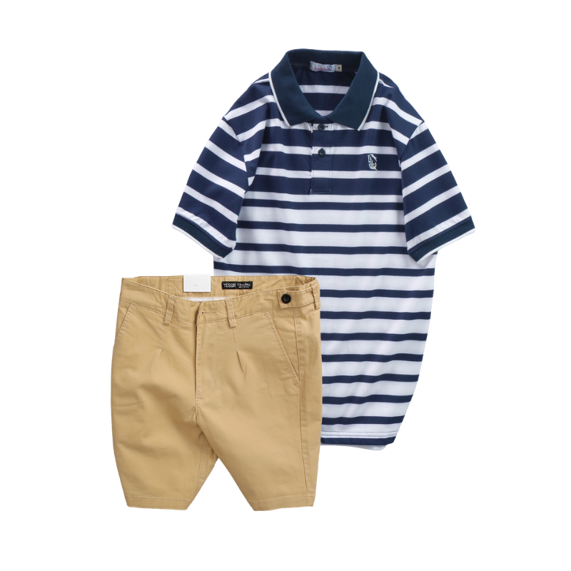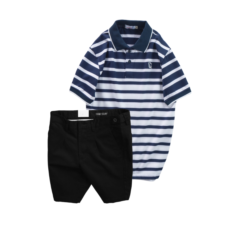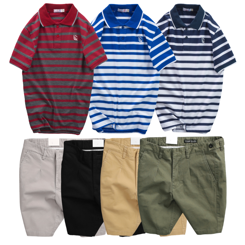 Chuyên sỉ set Bộ Nam – Áo Thun Nam Polo Cổ Bẻ Sọc Ngang Thêu Logo Trước Ngực Và Quần Short Kaki Co Giãn Phối Nút Cao Cấp (Có Size 36)