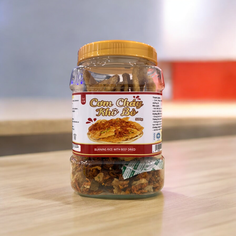 Thành Phần: cơm cháy, khô bò, lá chanh, đường, ớt