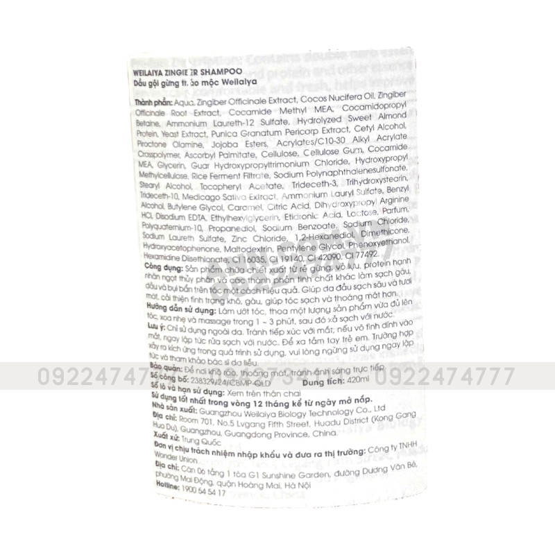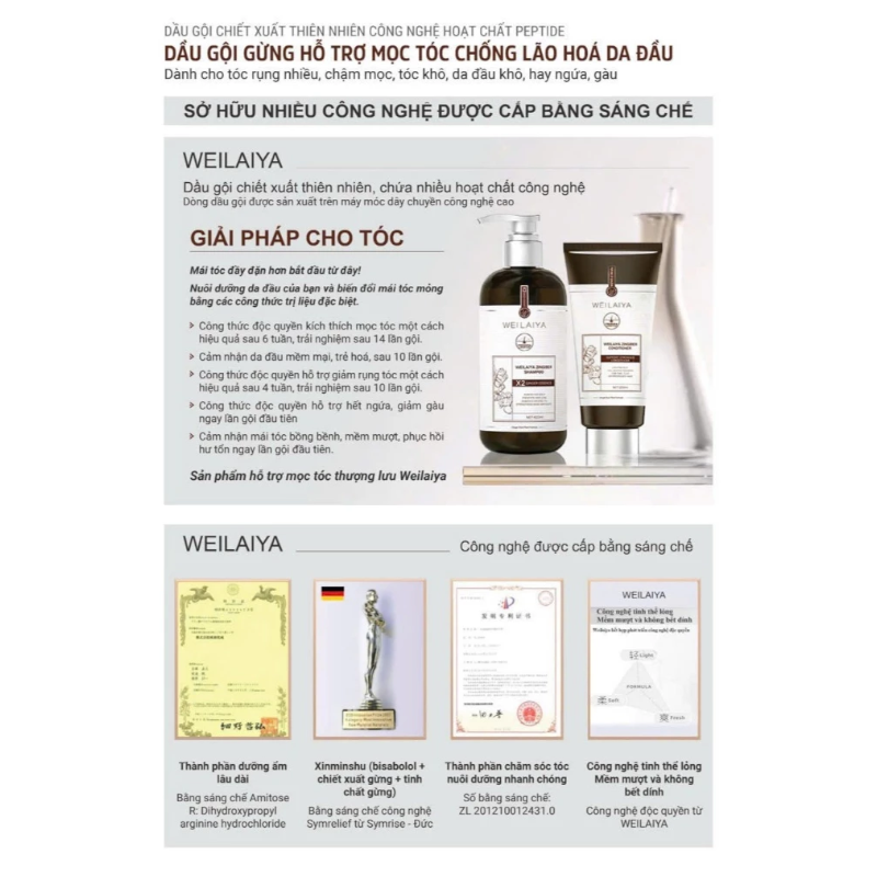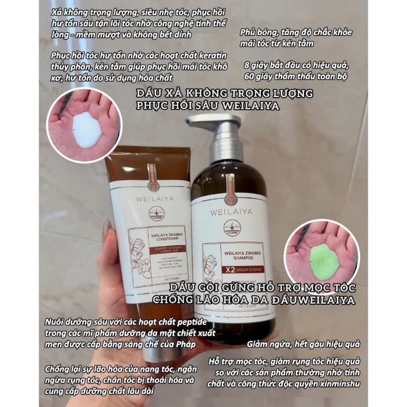 Combo Dầu Gội Xả Gừng Weilaiya Màu Nâu Zingiber X2 Ginger Essence Giúp Làm Sạch Gàu