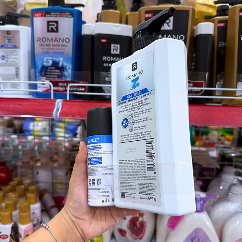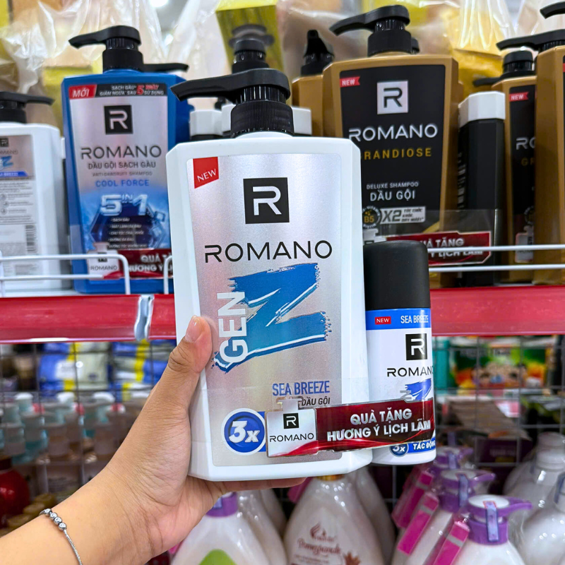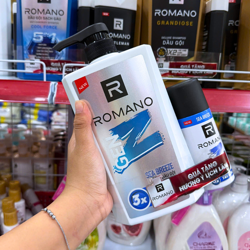 Dầu Gội Romano Gen Z 650g – Dầu Gội Nam Chai Trắng (Tặng Xịt Khử Mùi)