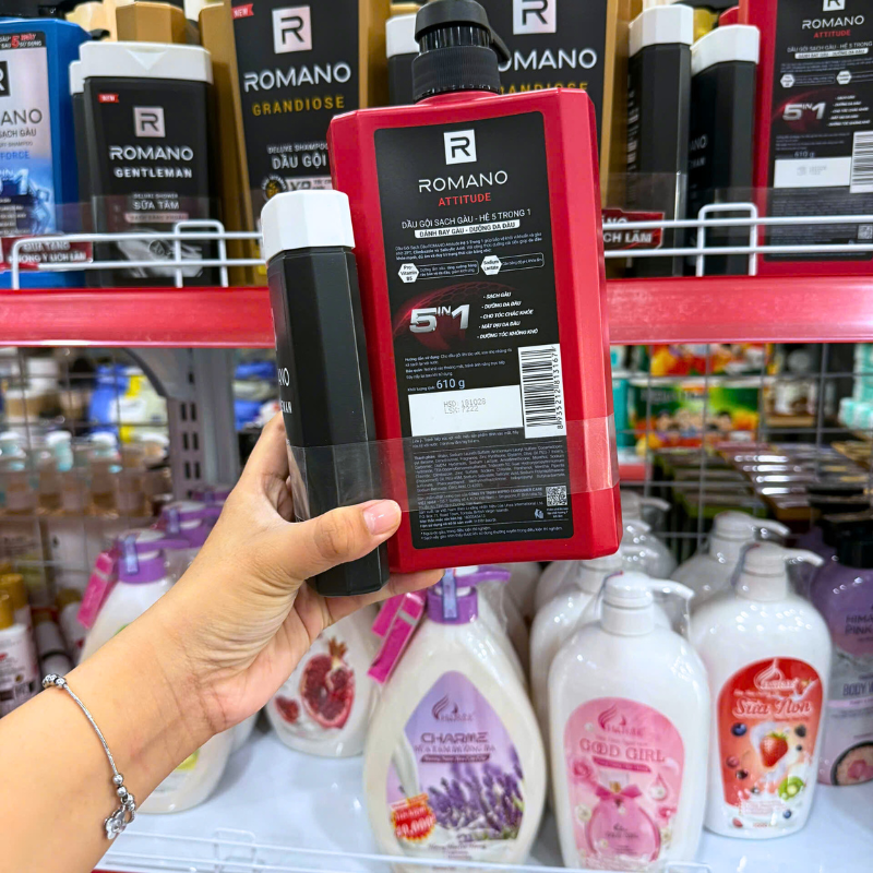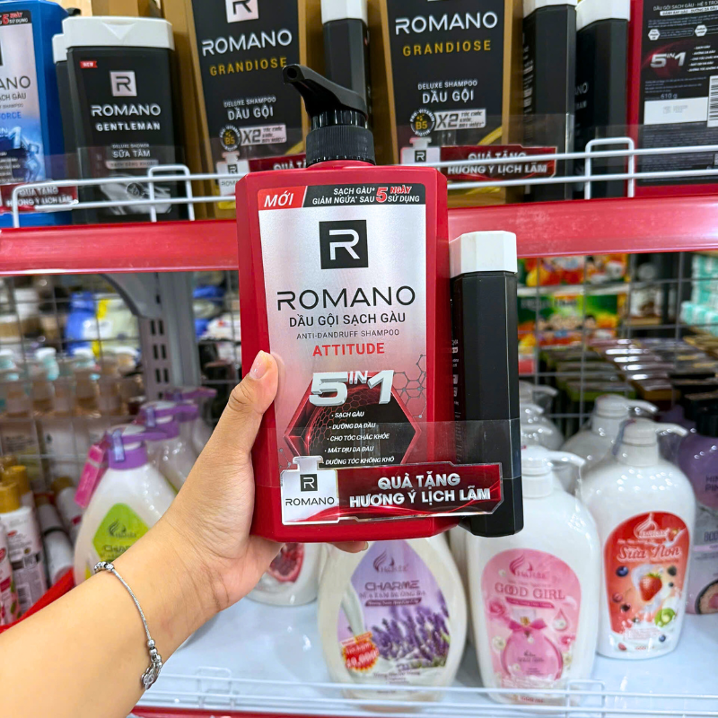 Dầu Gội Romano Sạch Gàu Anti – Dandruff Shampoo Attitude 5 In 1 650g – Dầu Gội Nam Chai Đỏ (Tặng Sữa Tắm Sạch Sảng Khoái)