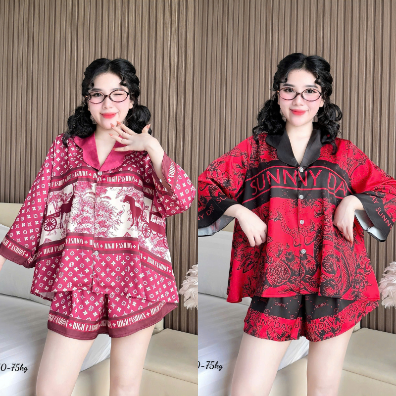 Đồ Bộ Ngủ Nữ Họa Tiết Đơn Giản Mặc Mát Thoải Mái Big Size 50–75kg