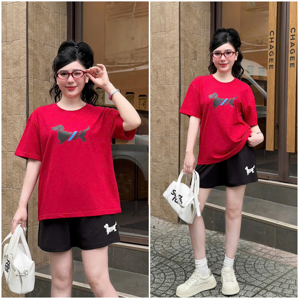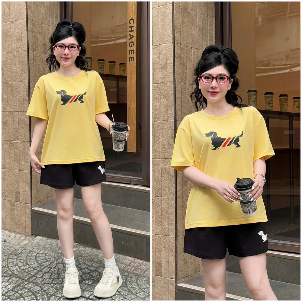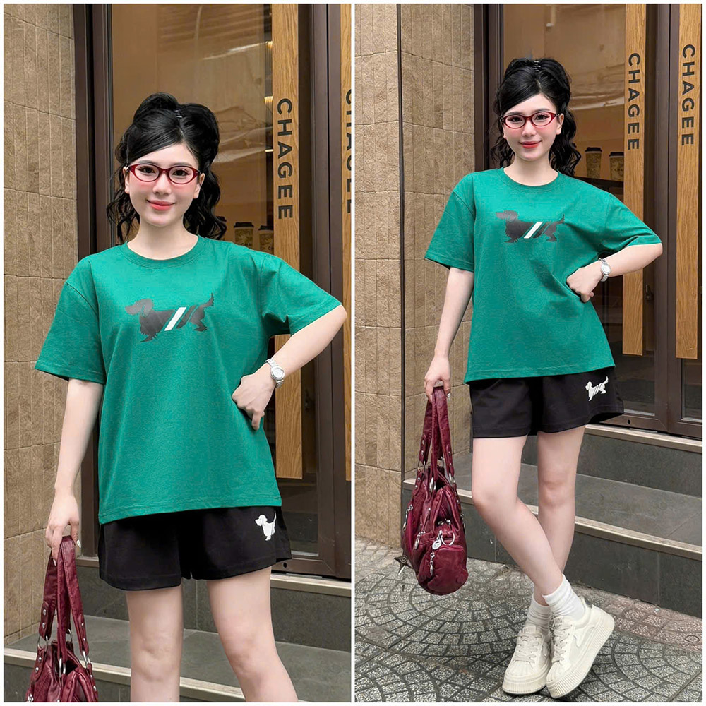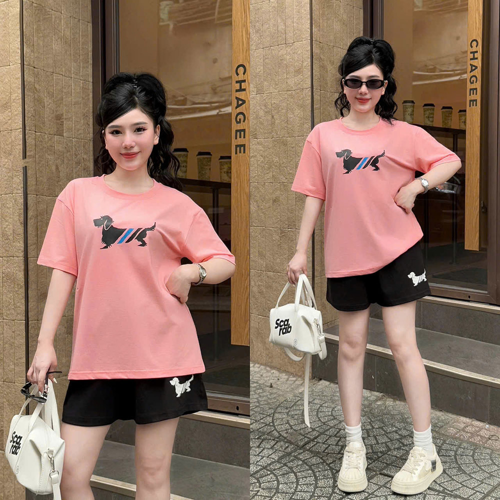 Đồ Bộ Nữ Áo Thun Cổ Tròn Tay Ngắn Quần Đùi Thể Thao Năng Động Vải Cotton Thoáng Mát Size 45-62kg