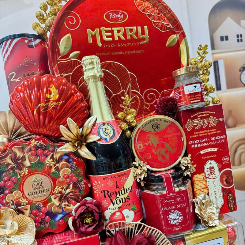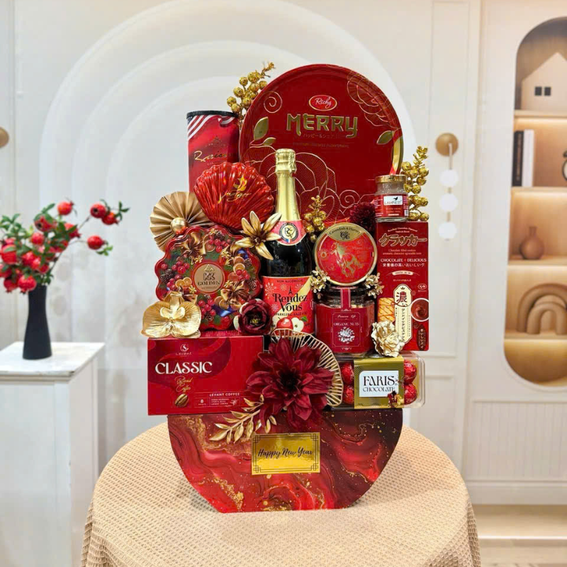 Giỏ Quà Tết Đỏ 13 Món – Quà Tặng Tết Sang Trọng – Quà Trang Trí Tết