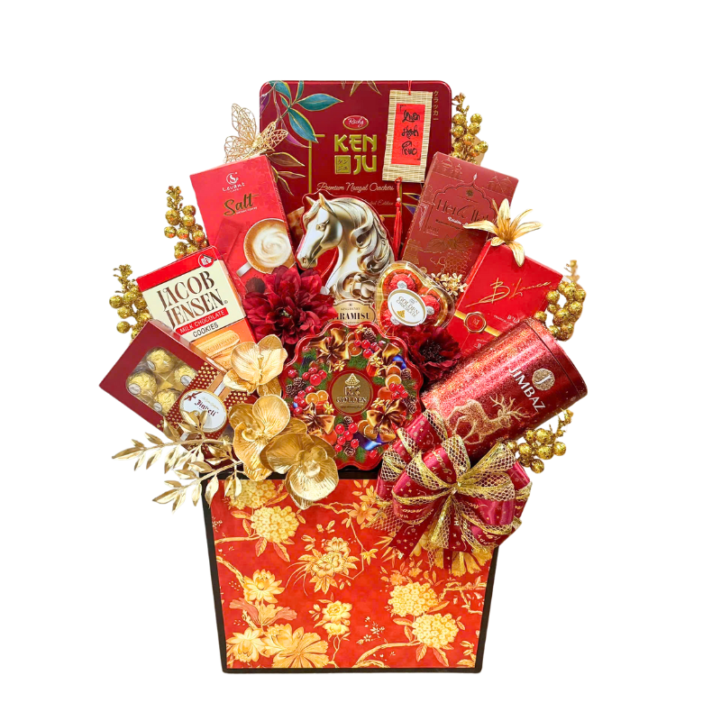 Giỏ Quà Tết Đỏ Bính Ngọ 12 Món – Quà Tặng Tết Sang Trọng – Quà Trang Trí Tết