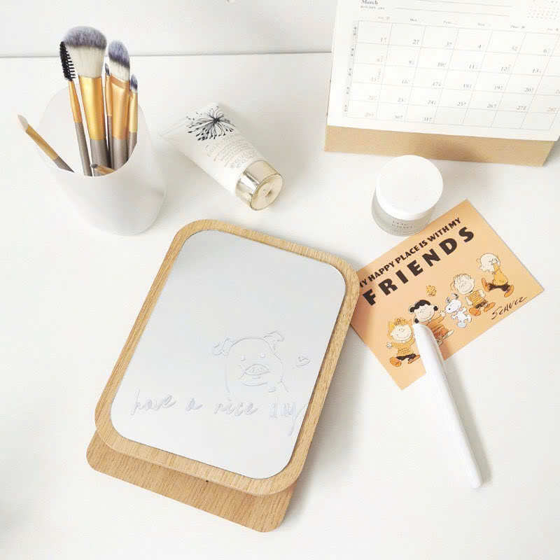 Gương Gỗ Để Bàn – Giương Trang Điểm Để Bàn – Gương Gỗ – Khớp Xoay 180 Độ 19x16cm