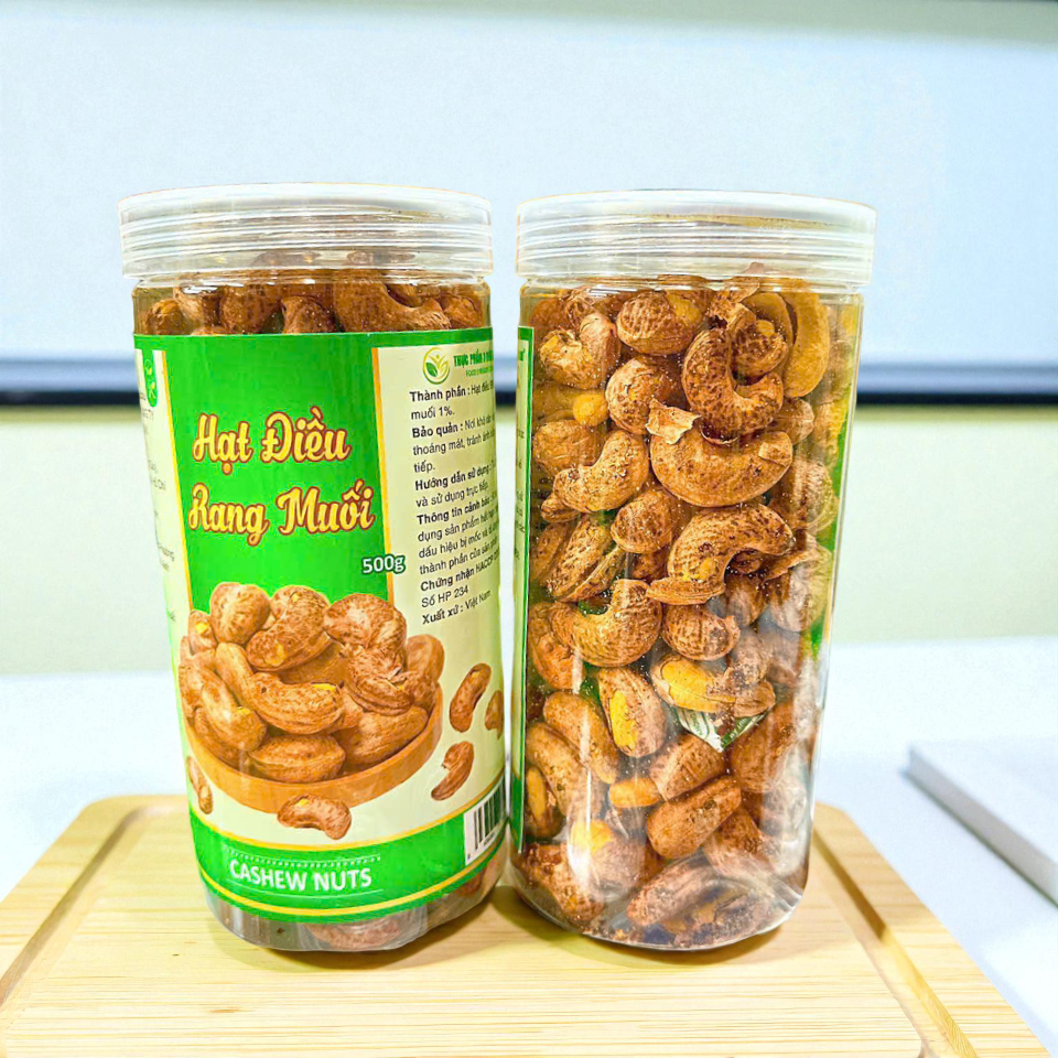 Hạt Điều Cồ A Rang Muối Nguyên Hạt Vỏ Lụa (Loại xuất khẩu) 500g Hộp