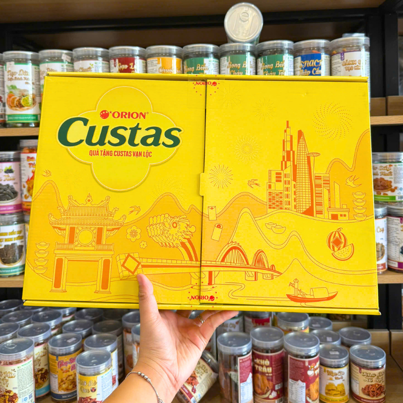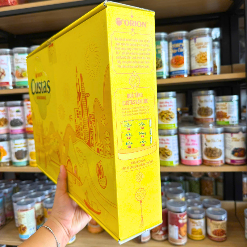 Hộp Bánh Tết Orion Custas Vạn Lộc – Bộ Quà Tết Custas Orion Vạn Lộc Mix 3 Vị Hộp 564g Gồm 6 Món