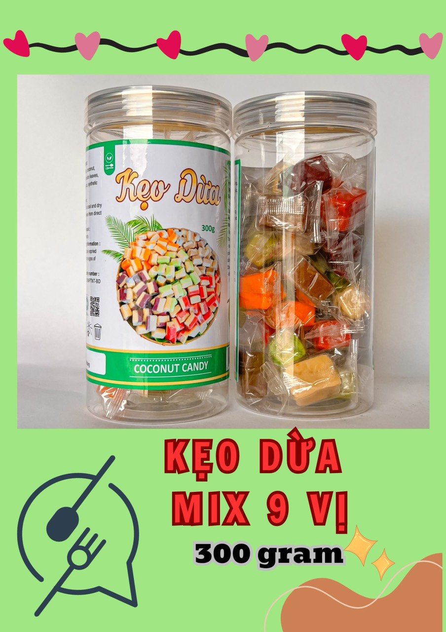Kẹo Dừa Mix 9 Vị Thơm Ngon 300g Hộp