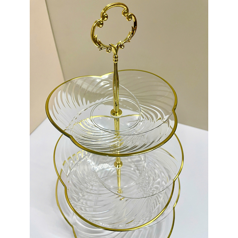 Khay Mứt Nhựa Mạ Vàng 3 Tầng Trong Suốt – Khay Đựng Mứt Tết Bánh Kẹo 35,5x26cm