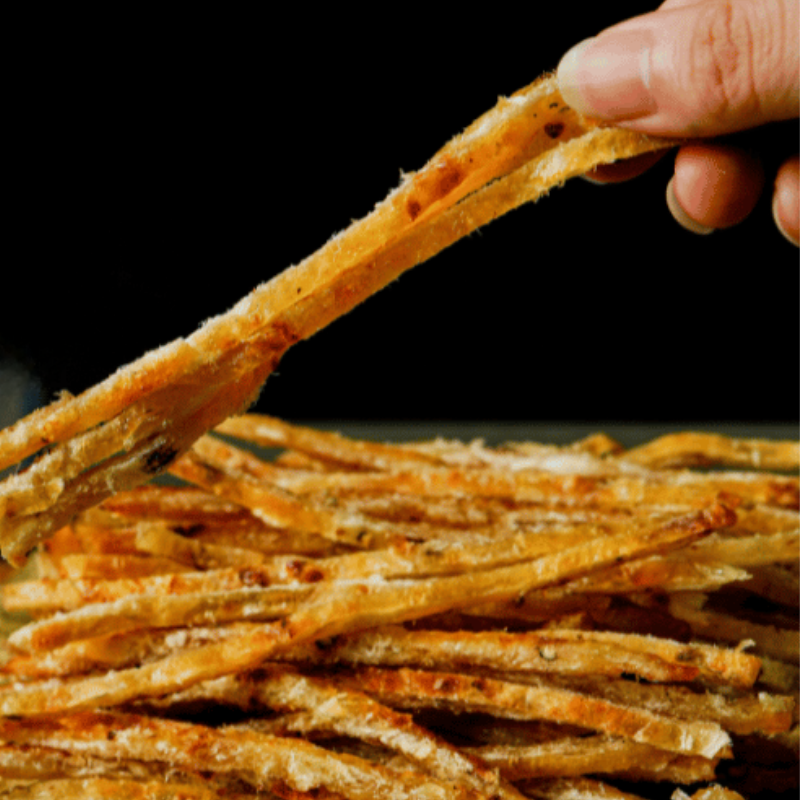 Thành phần : Cá bống khô ghép 90%, gia vị 10% (đường, muối, ớt, chất điều vị INS 621, tiêu).