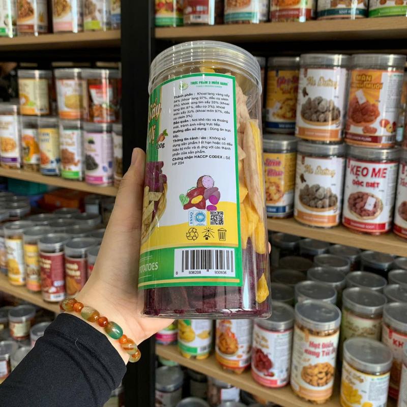 Khoai lang vàng – khoai lang tím – khoai môn sấy được lựa chọn từ những củ khoai tươi ngon nhất từ những vùng nguyên liệu tại Đà Lạt và các vùng lân cận thuộc tỉnh Lâm Đồng, qua dây chuyên sản xuất hiện đại thành phẩm món khoai sấy giòn bùi, ngọt thanh đúng vị của nó không chứa đường.