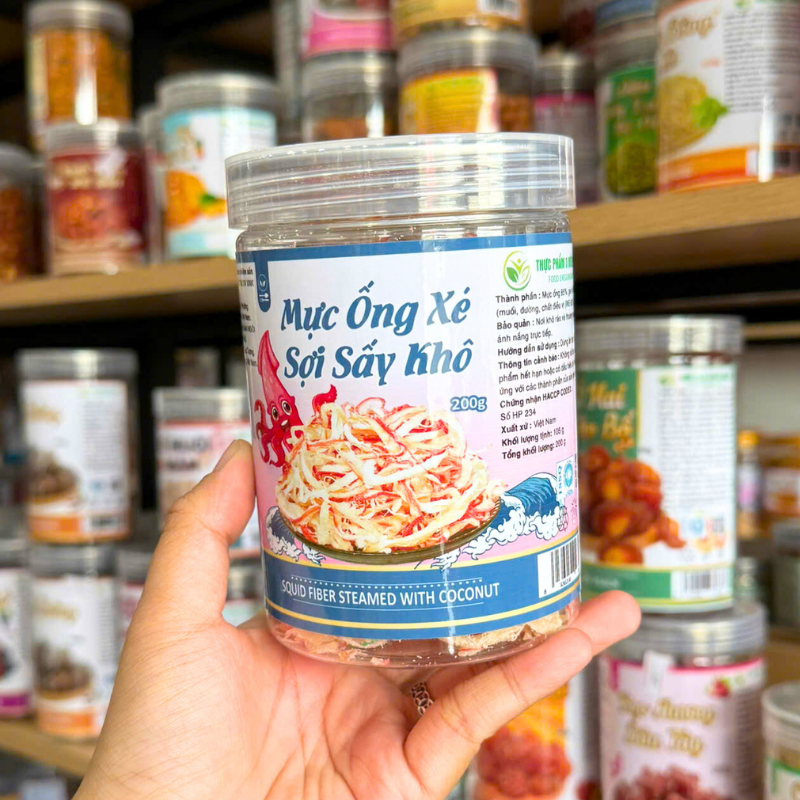 Mực Ống Xé Sợi Sấy Khô - Mực Sợi Dừa Thơm Ngon 200g - Hũ Pet
