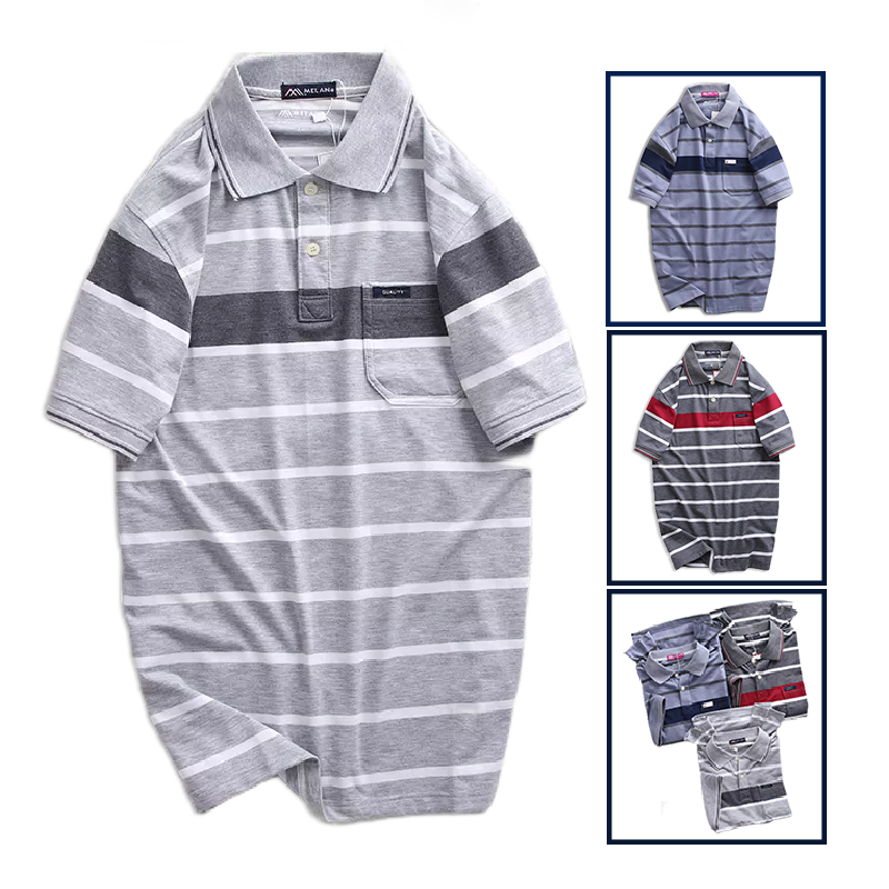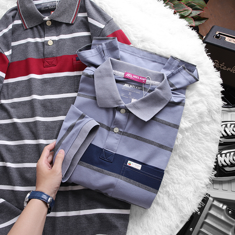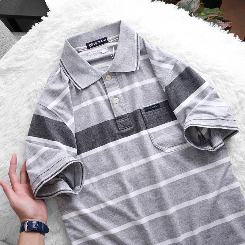 Nguồn hàng sỉ áo Thun Sọc Nam Melan Cổ Bẻ Có Túi Thun Cotton