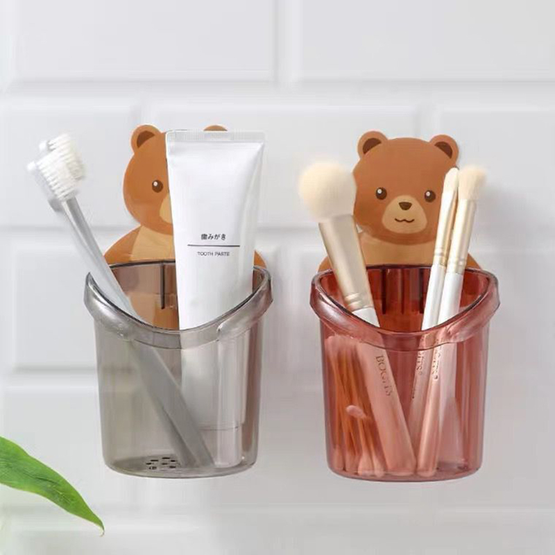 Nguồn hàng sỉ combo 2 Cốc Dán Tường Hình Gấu – Cốc Đựng Kem Đánh Răng Dao Cạo Râu Cắm Bút 10.5x8x9.5cm