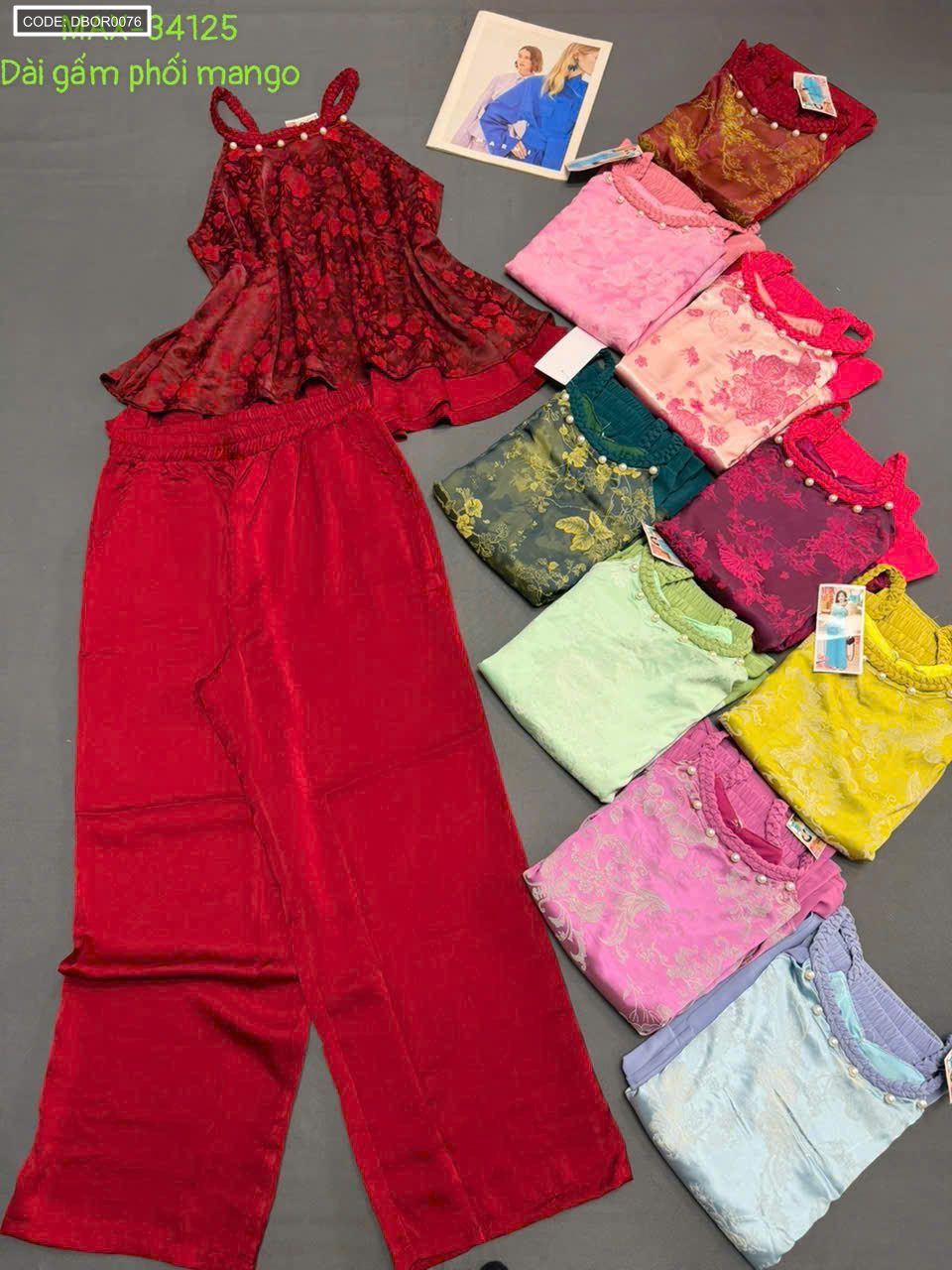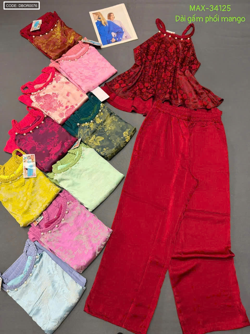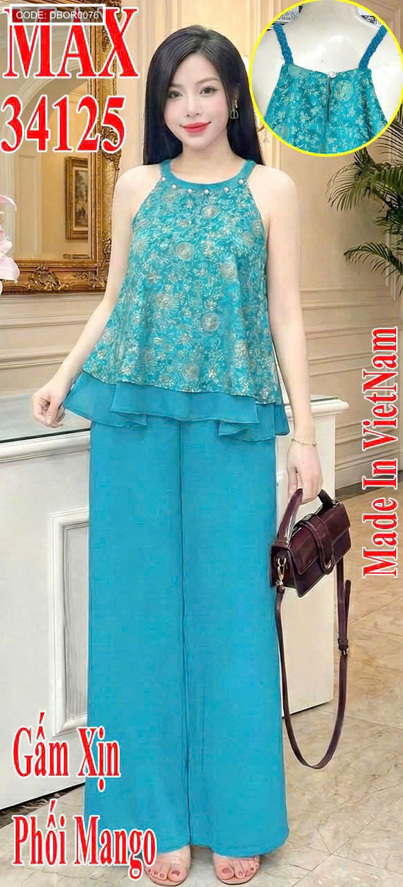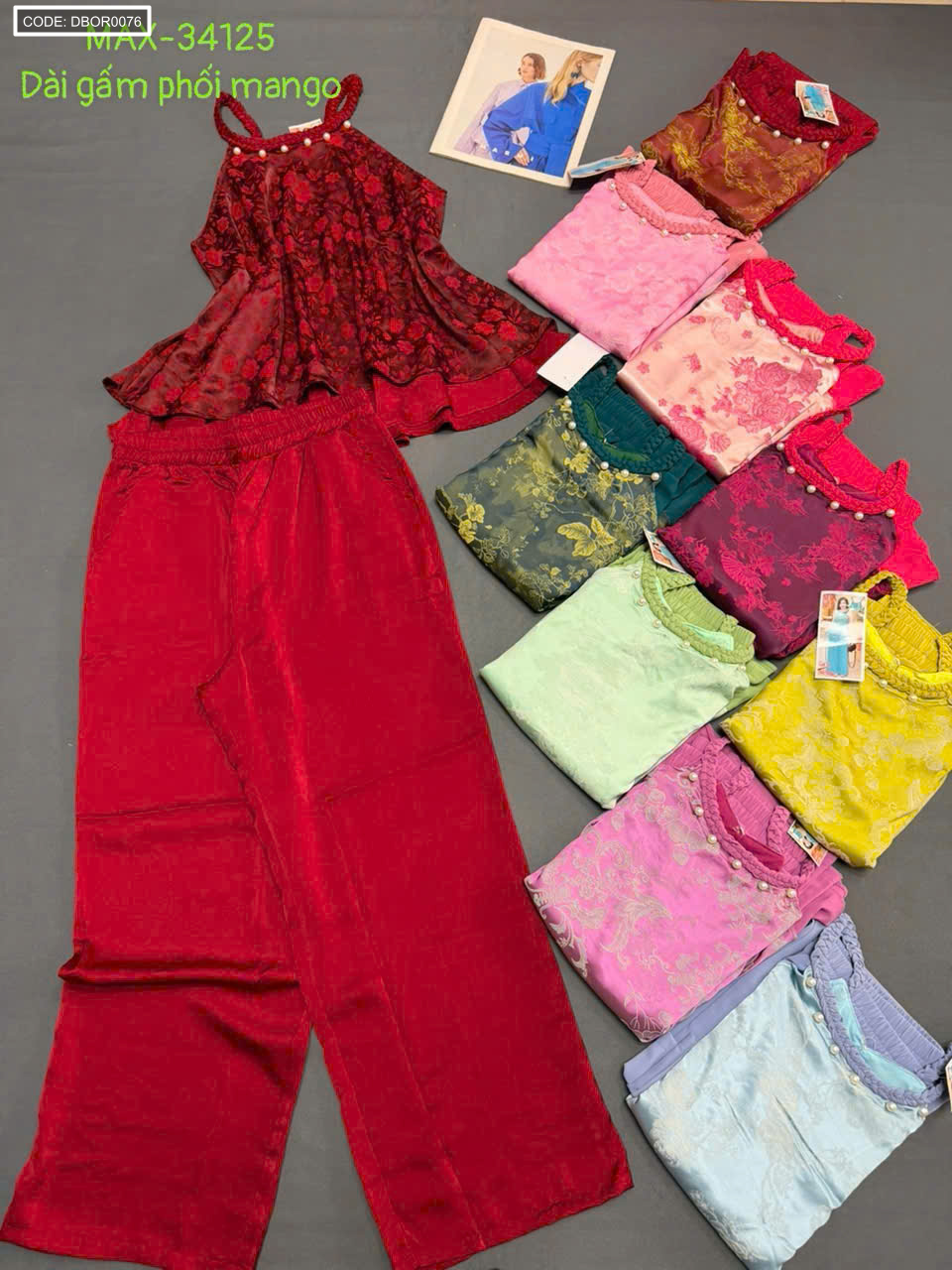 Nguồn hàng sỉ đồ bộ nữ sát nách quần dài ống rộng Dài gấm phối mango MAX-34125