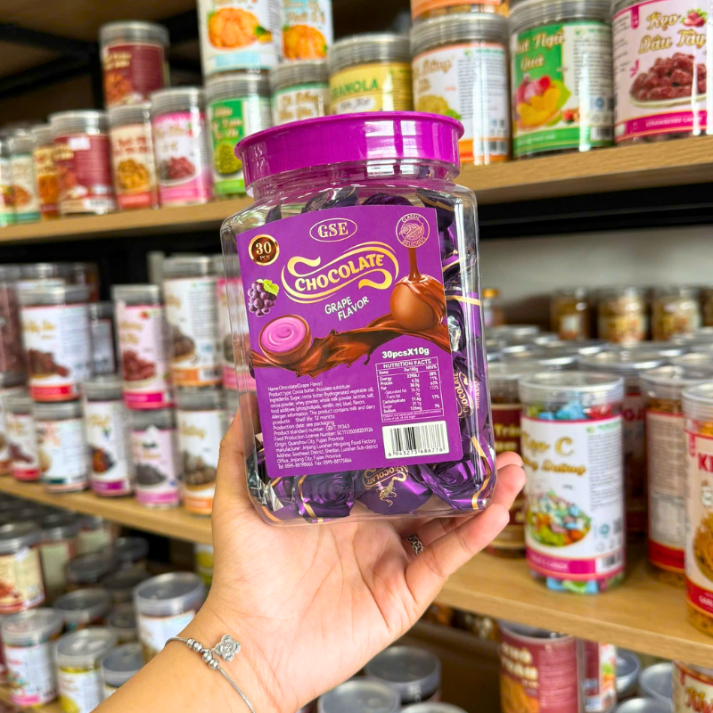 Nguồn hàng sỉ kẹo Chocolate Gse – Kẹo Sô Cô La Thơm Ngon Vị Dâu – Nho Hộp 30 Cái x 10g